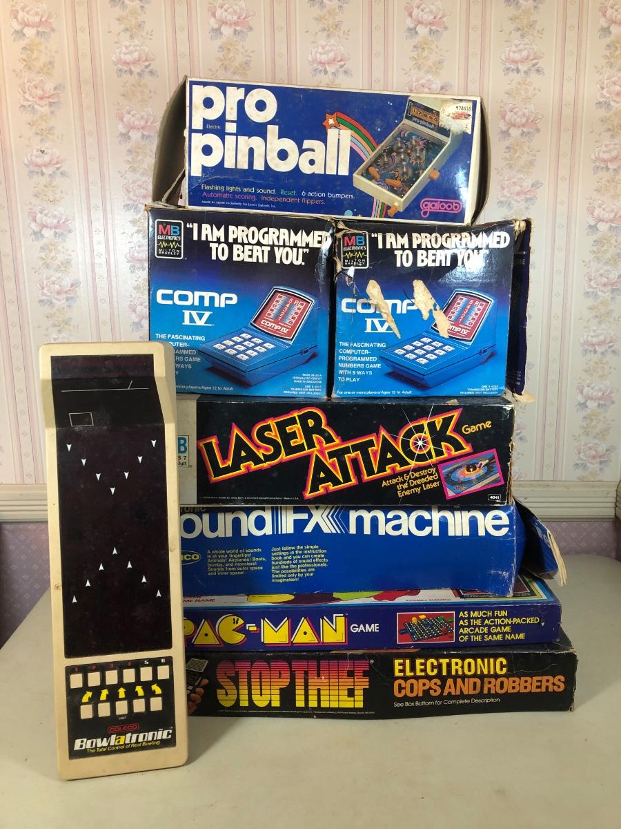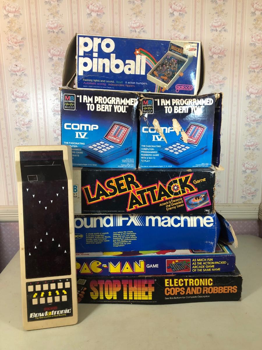 LOT 421K: Vintage Electronic Games - Milton-Bradley Comp IV, Laser Attack, Pac-Man, Galoob Pro Pinball & More