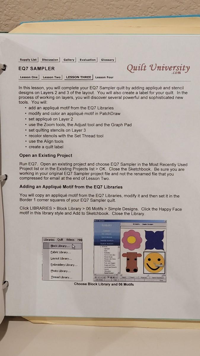 Lot 422: (2) Quilting University Notebooks and New Quilting Designs