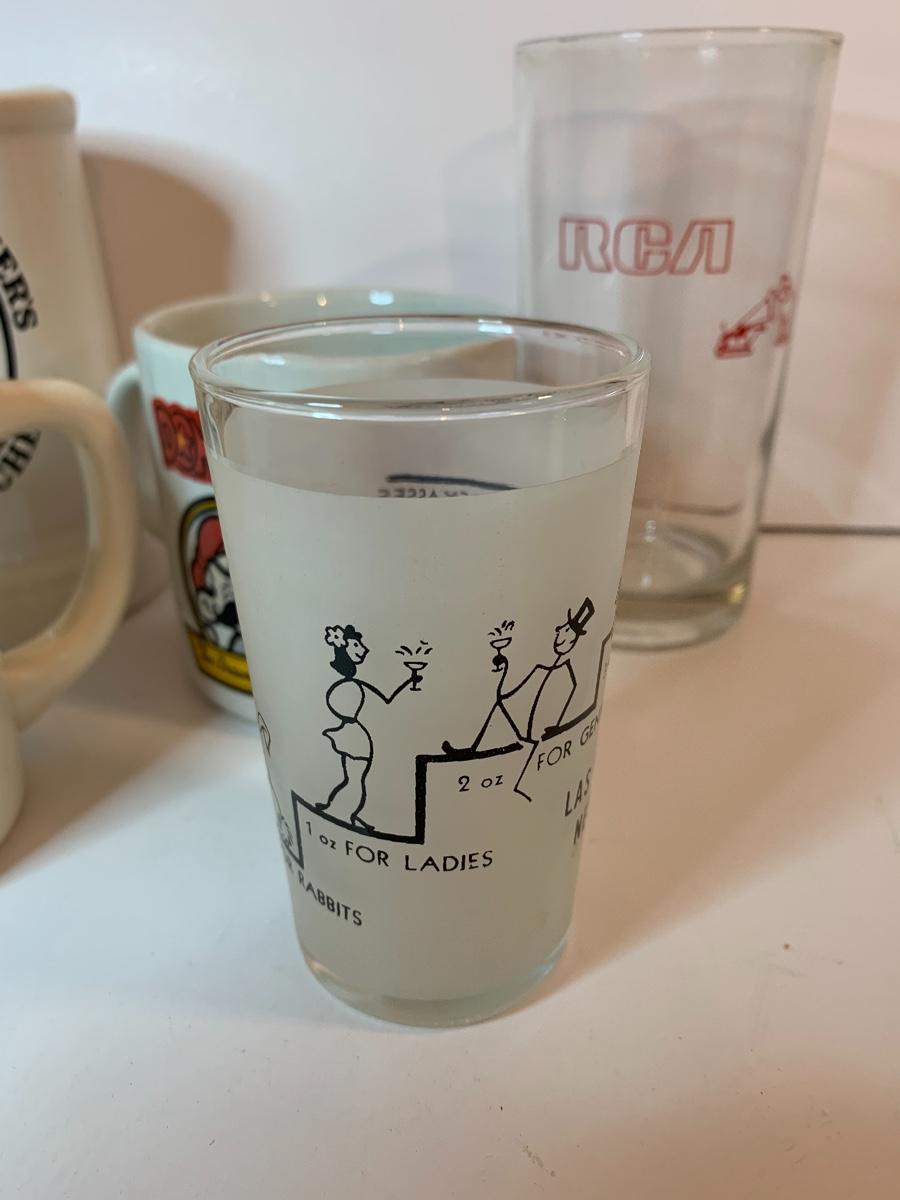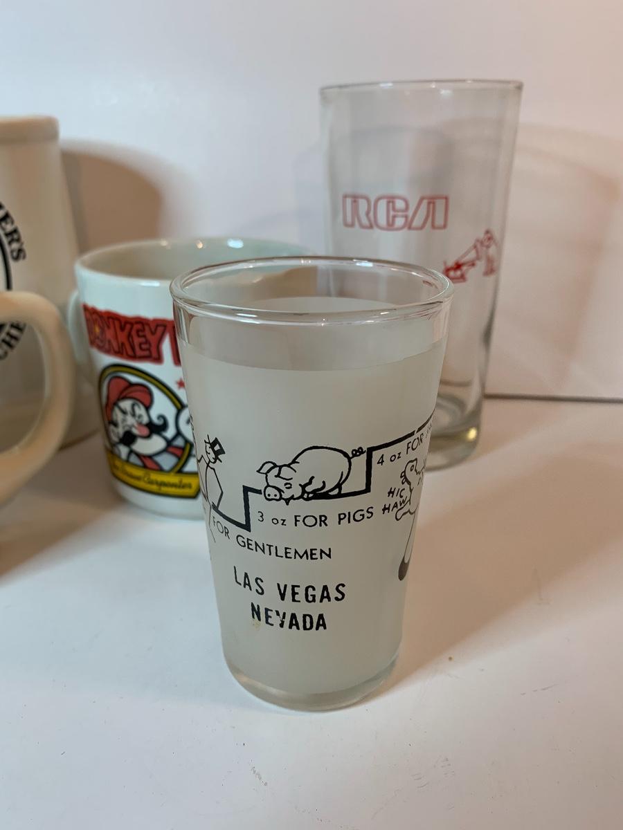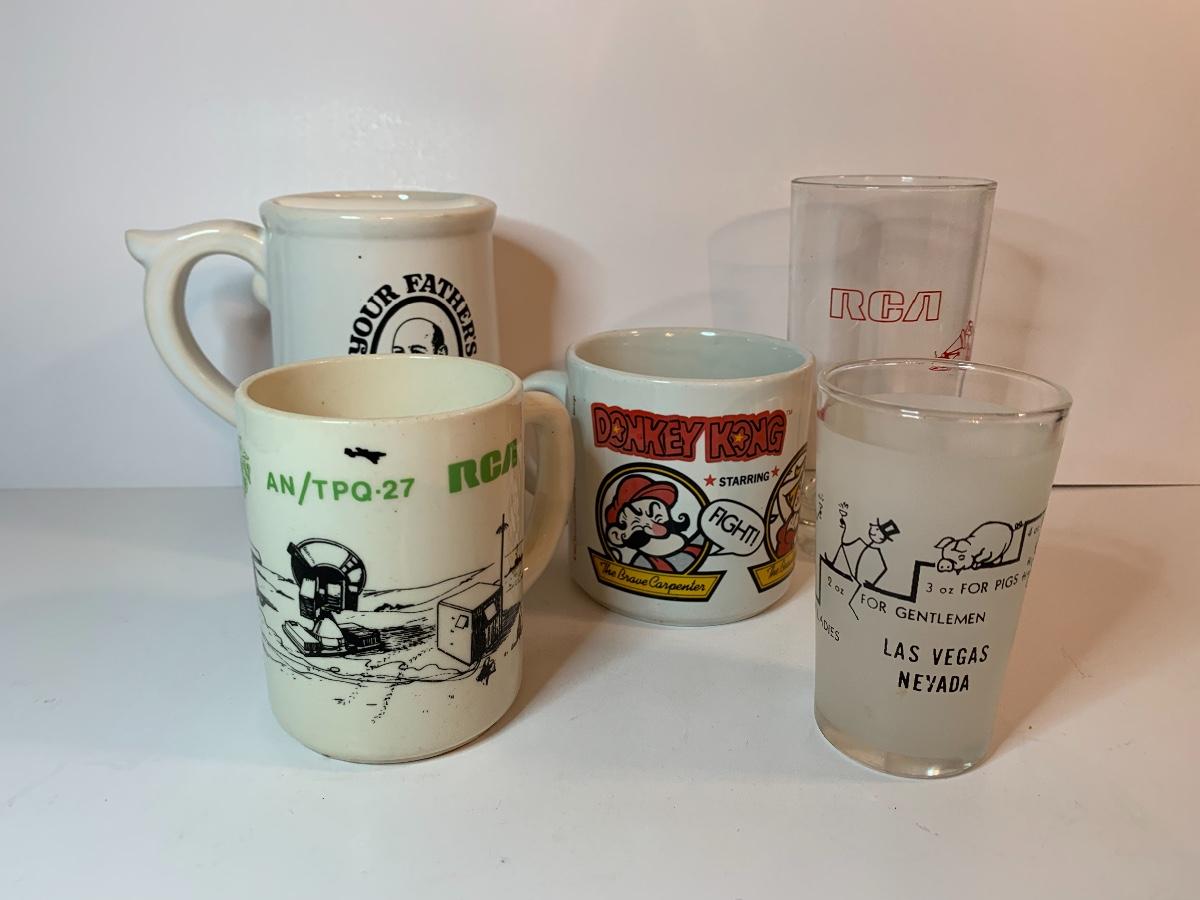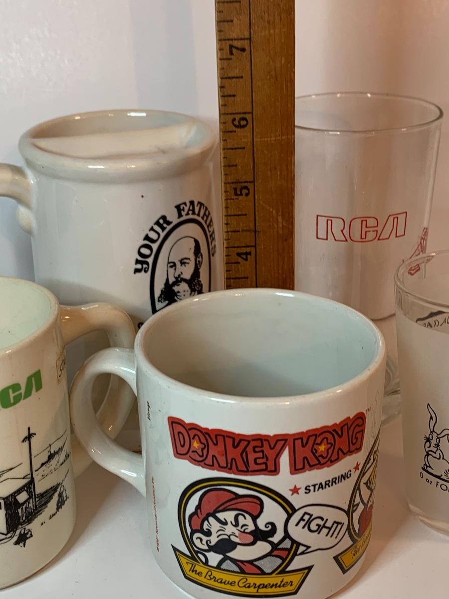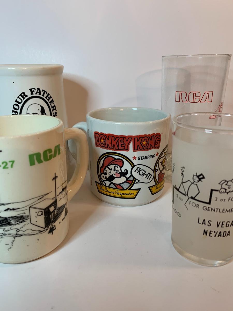 Lot 422 Vintage RCA Glass & Mug, Donkey Kong, Mustache Mug and More