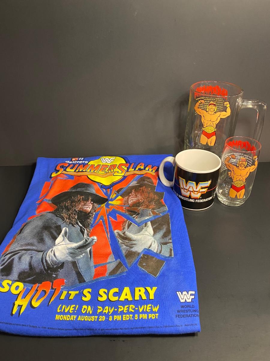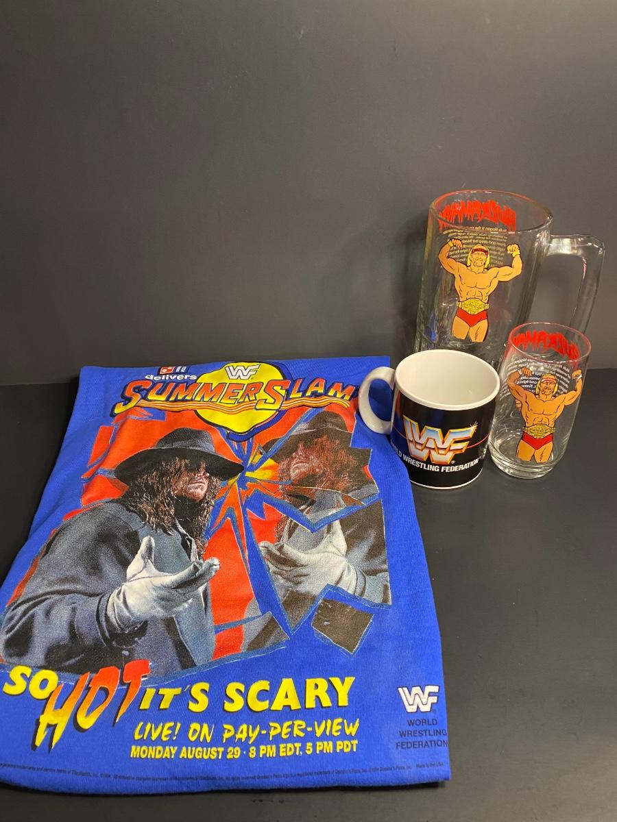 Lot 422: WWF Wrestling Hulk Hogan, XL Summer Slam Vintage T-shirt, & Collectibles