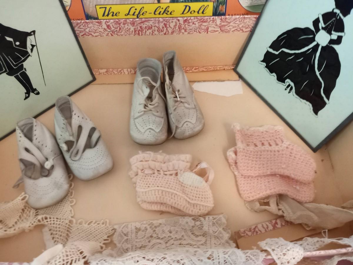 SILHOUETTES, OLD BOOKS, VINTAGE BABY SHOES AND BOOTIES, OLD WONDER BABY BOX A LITTLE ROUGH