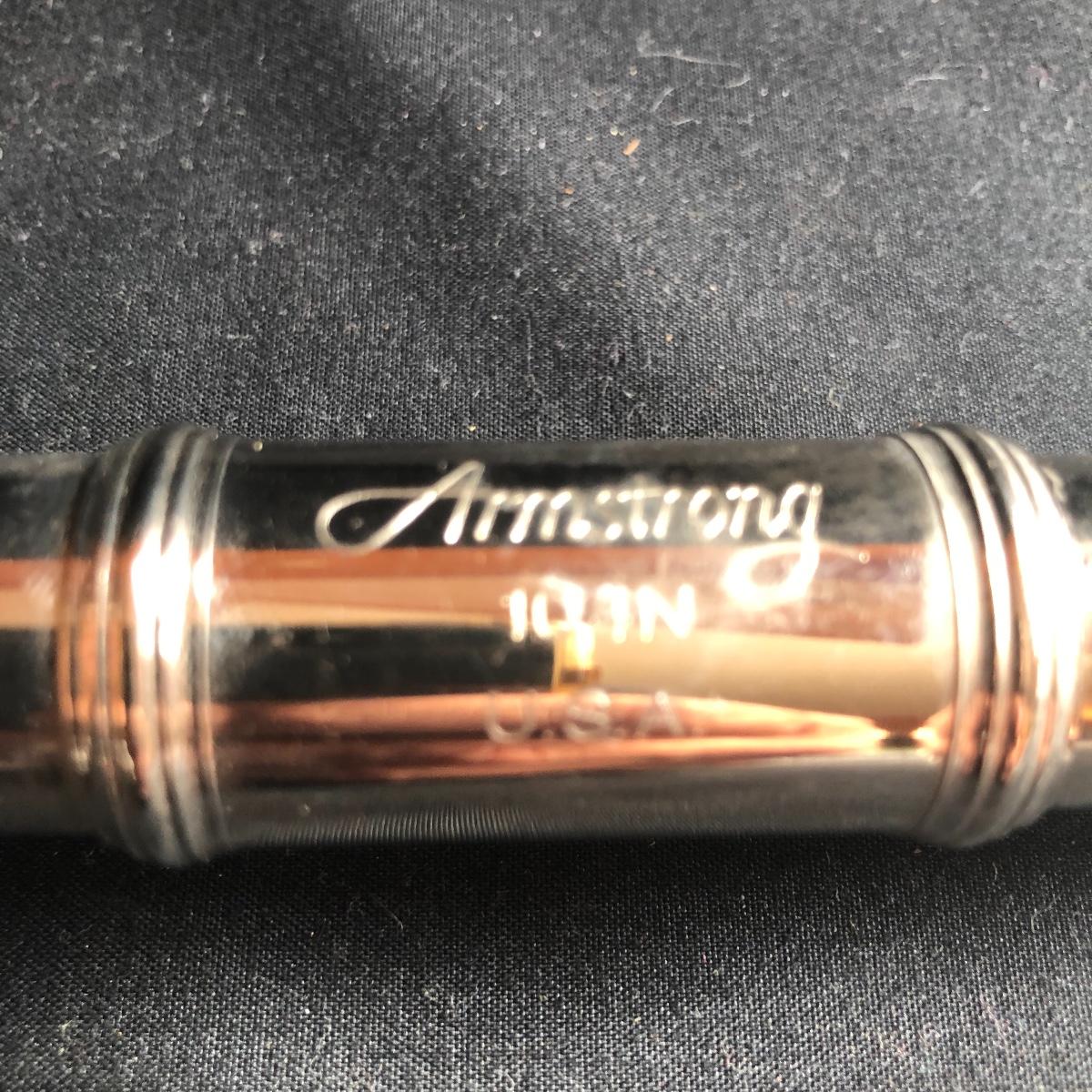 This Armstrong flute is a great find! The Armstrong flute is model # 104N and comes with a case and appears to be in good condition.