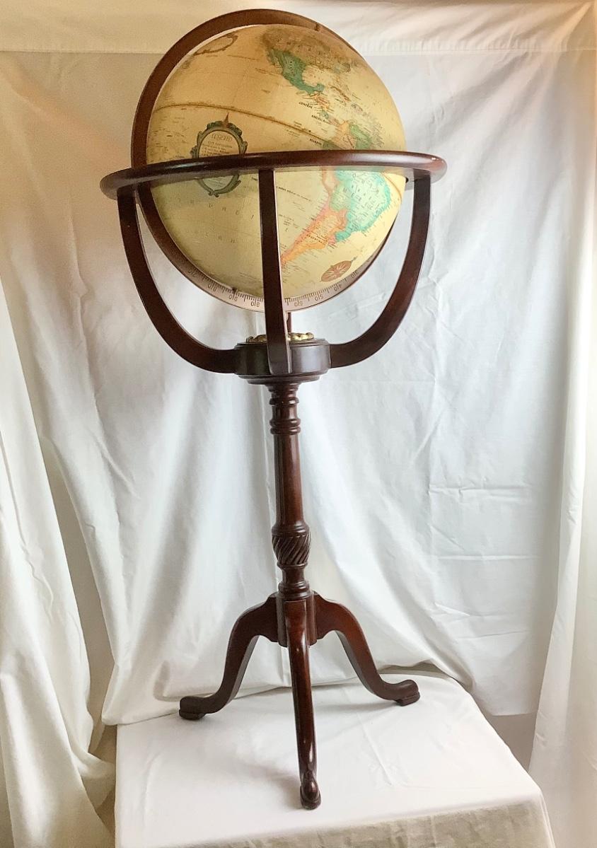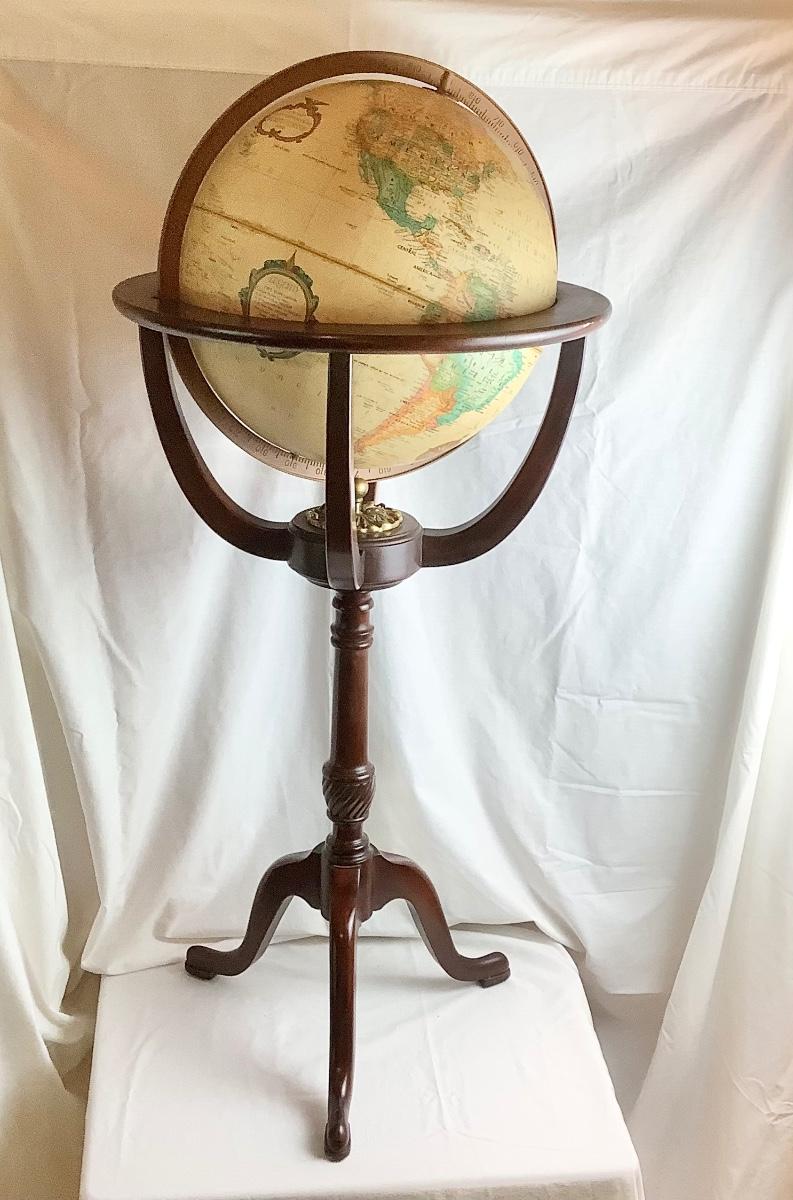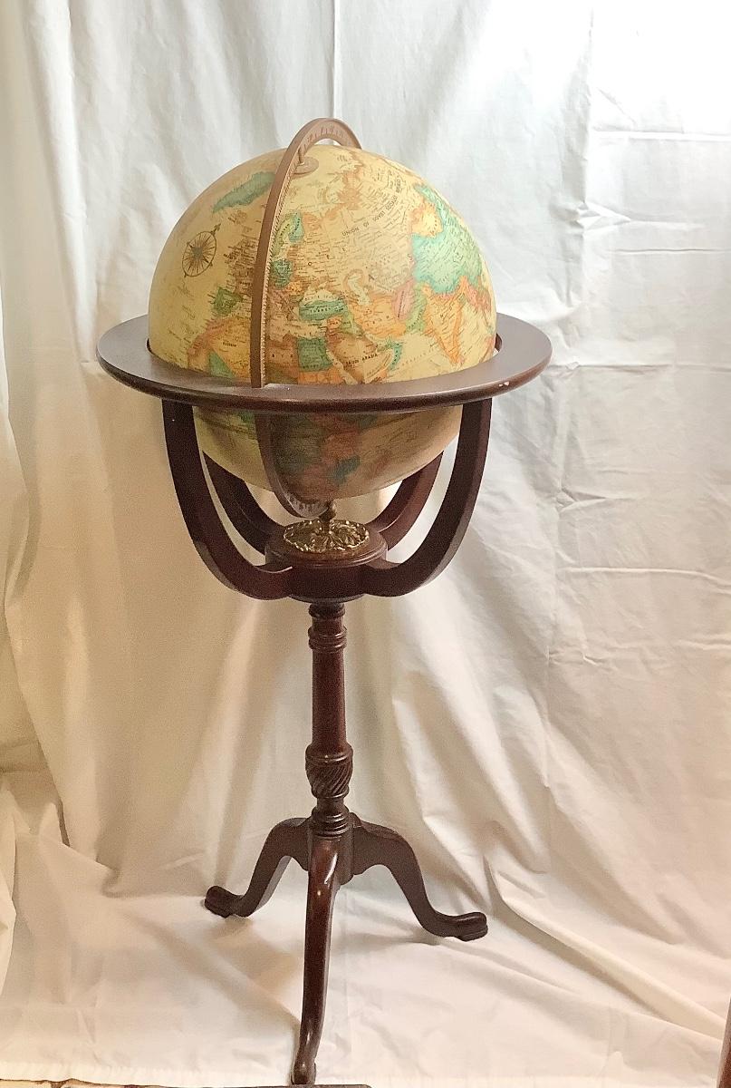 Lot 422. Replogle 16” Globe on Mahogany/Brass Stand