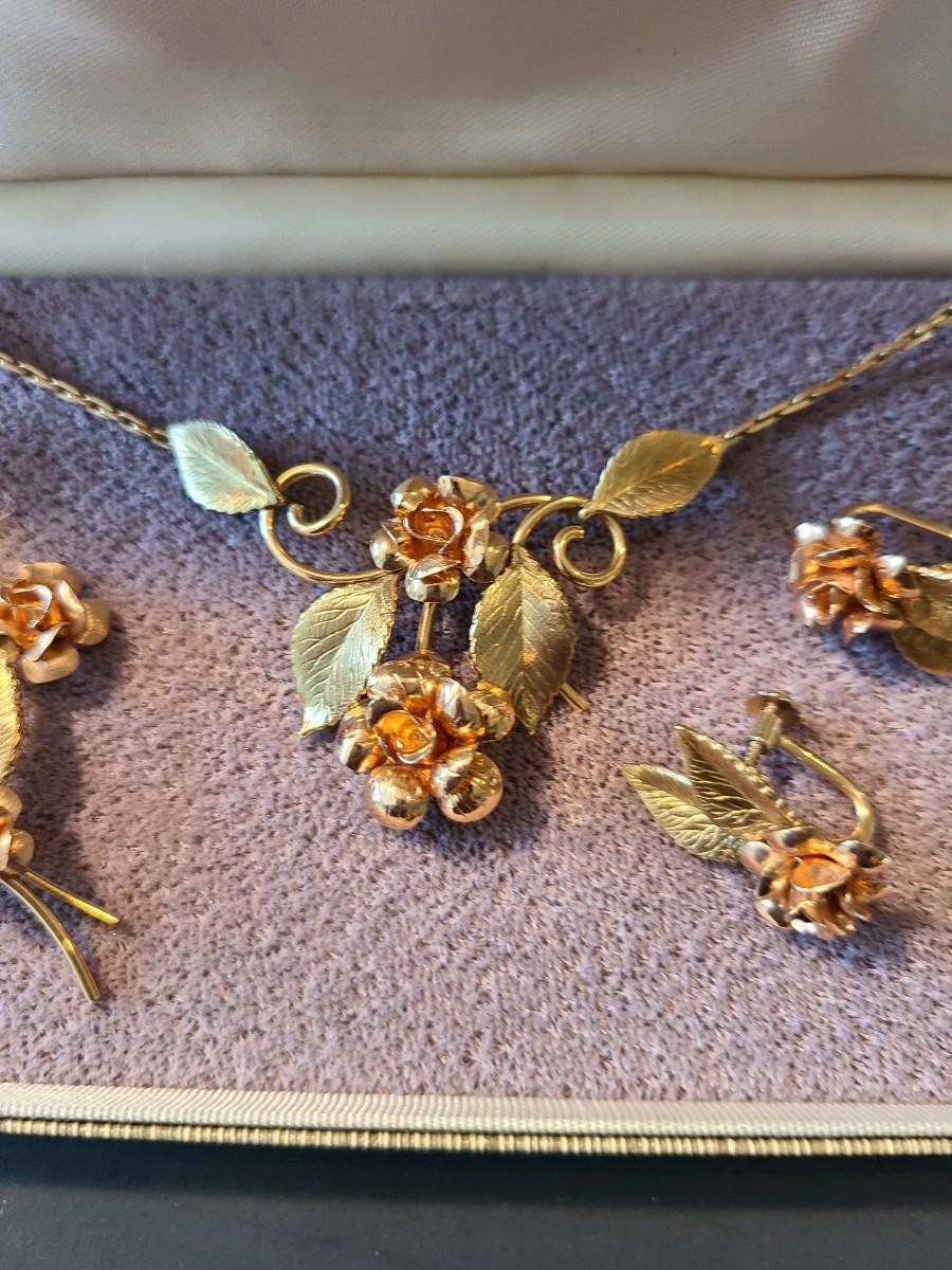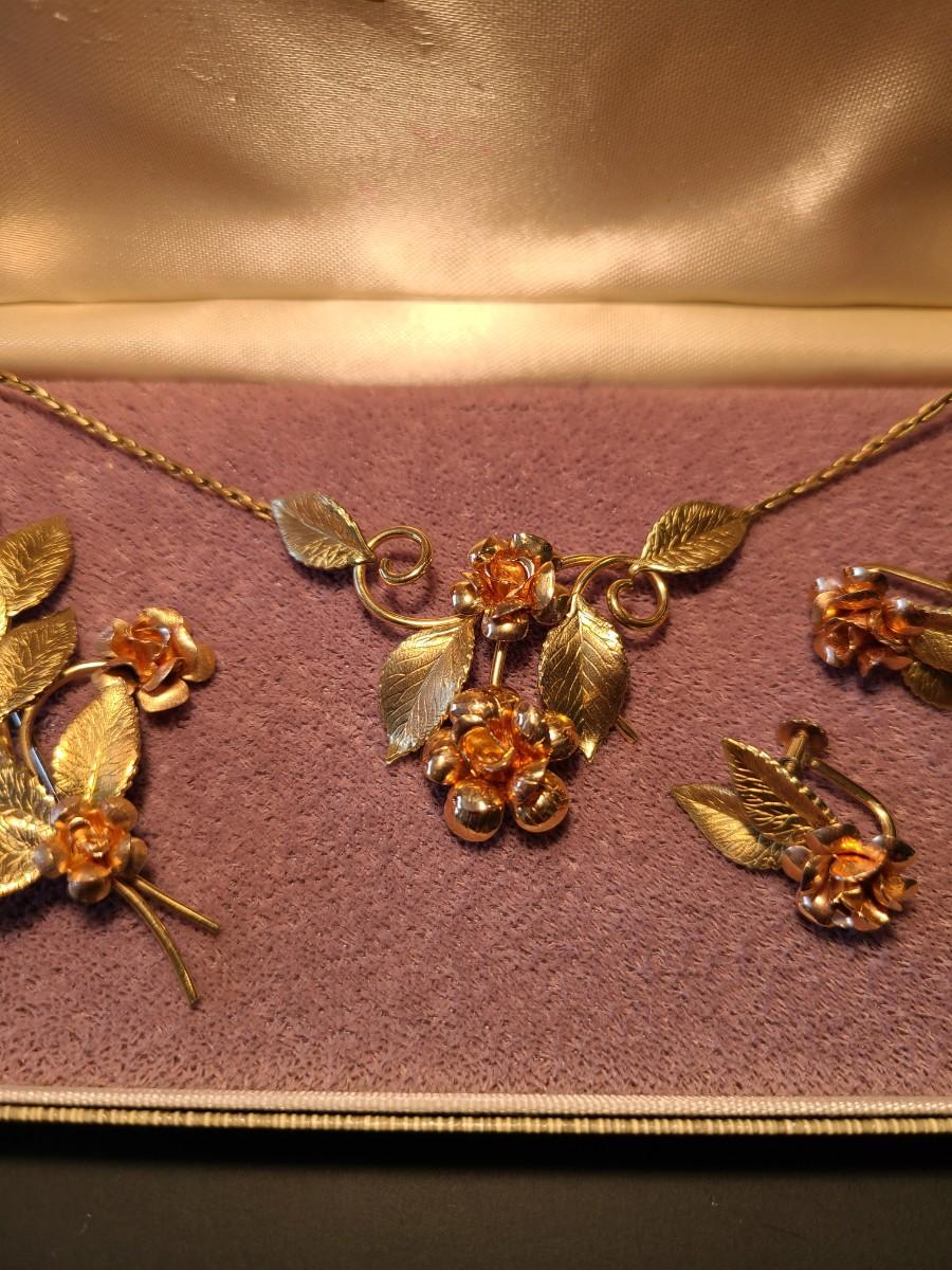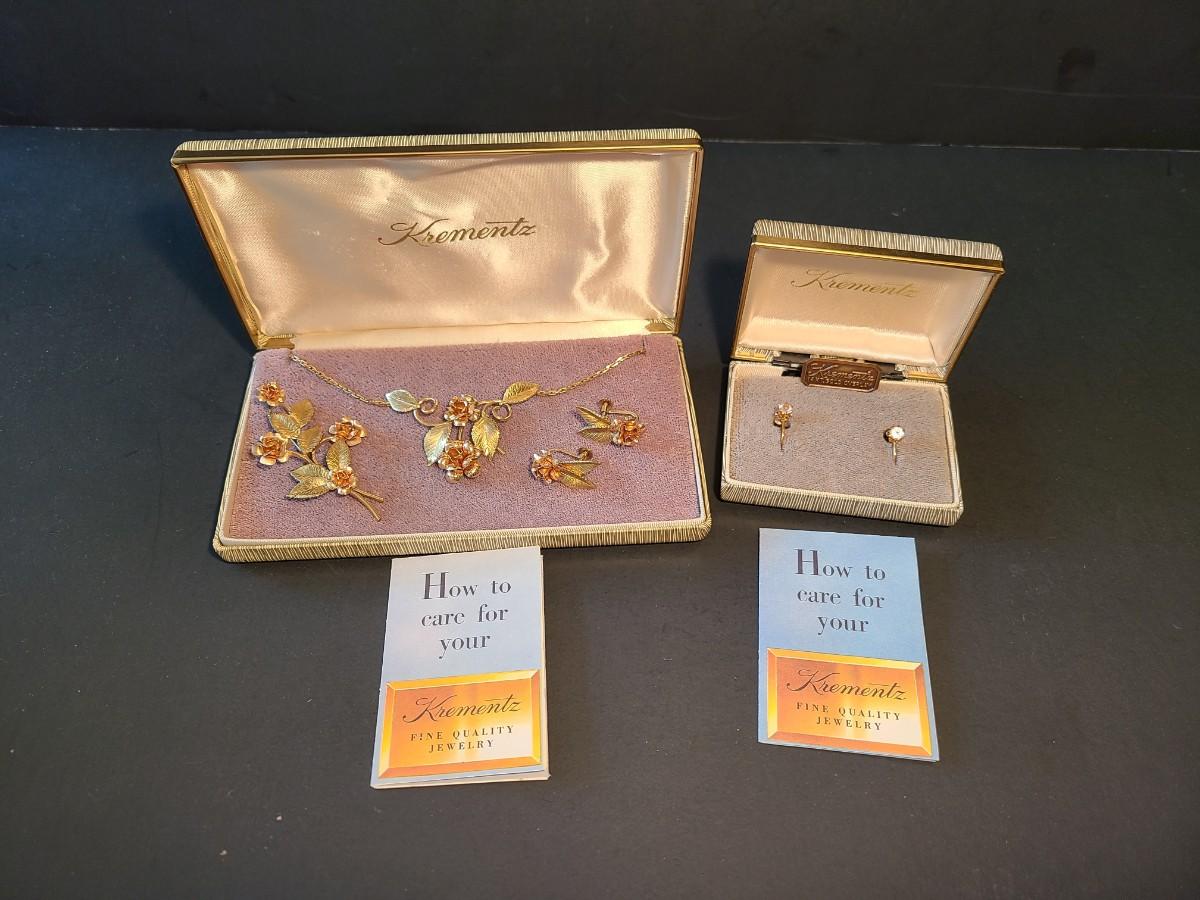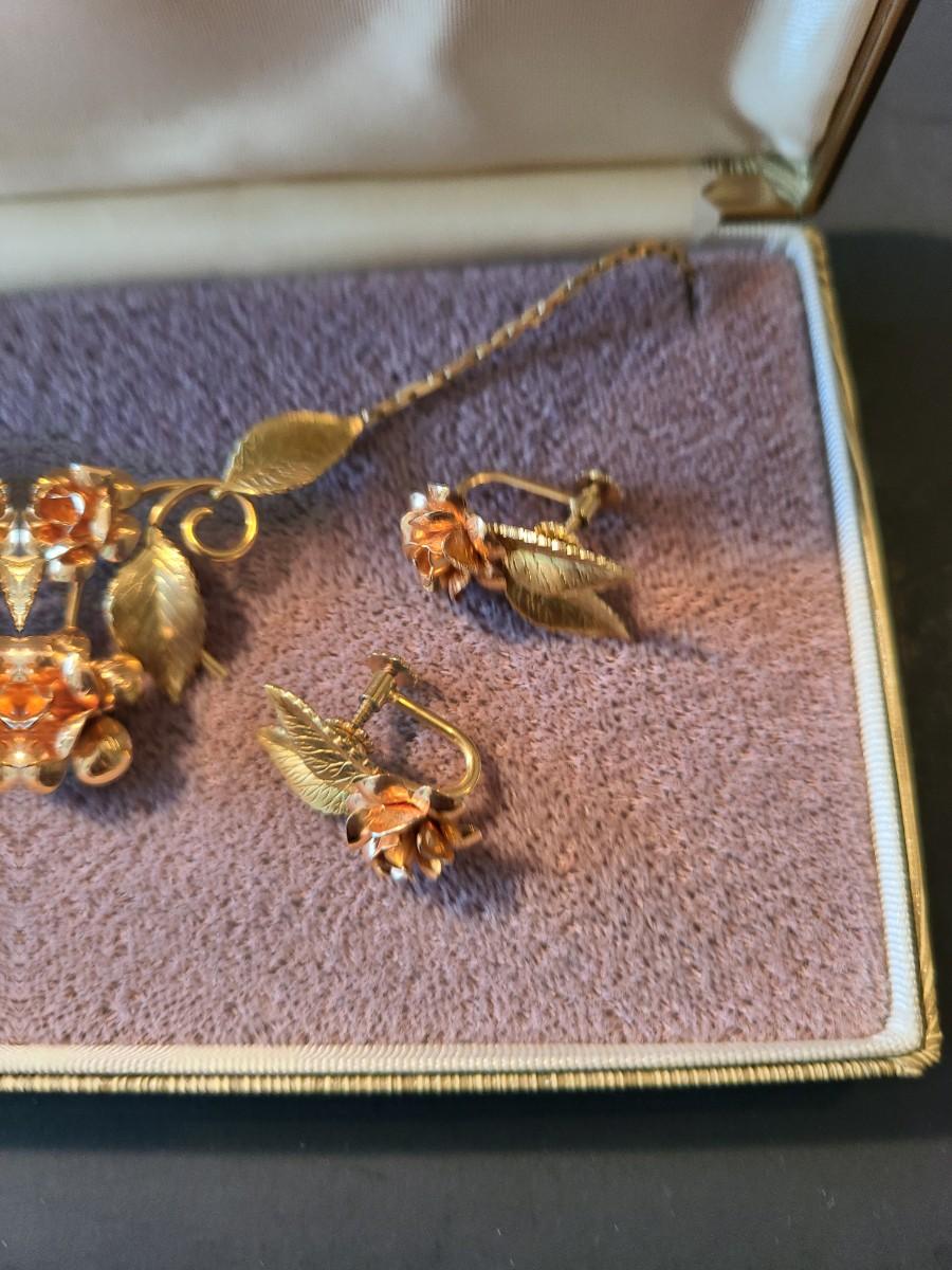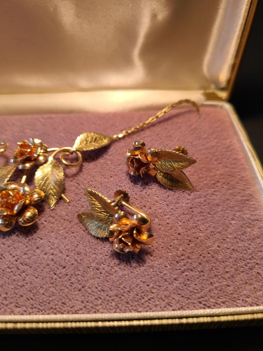 Earrings are 14kt overlay. Both are lovely sets. Earrings are screwbacks. Please see all pictures as they are the best representation of the items. The pictures show condition, measurements if taken, and what is included in the lot. Due to the large amount that we photograph and the time frame, we are not always able to take measurements. All items unless noted, are pre-owned and have been used. If you purchased furniture, you must bring help. We do not allow one person to carry large furniture out on their own. Bring help, tools and a truck for the safety of our client’s homes, and your personal safety. Any damages that result to the property including walls, and floors due to moving of the furniture will be charged to the buyer. Company policy. Thank you.
