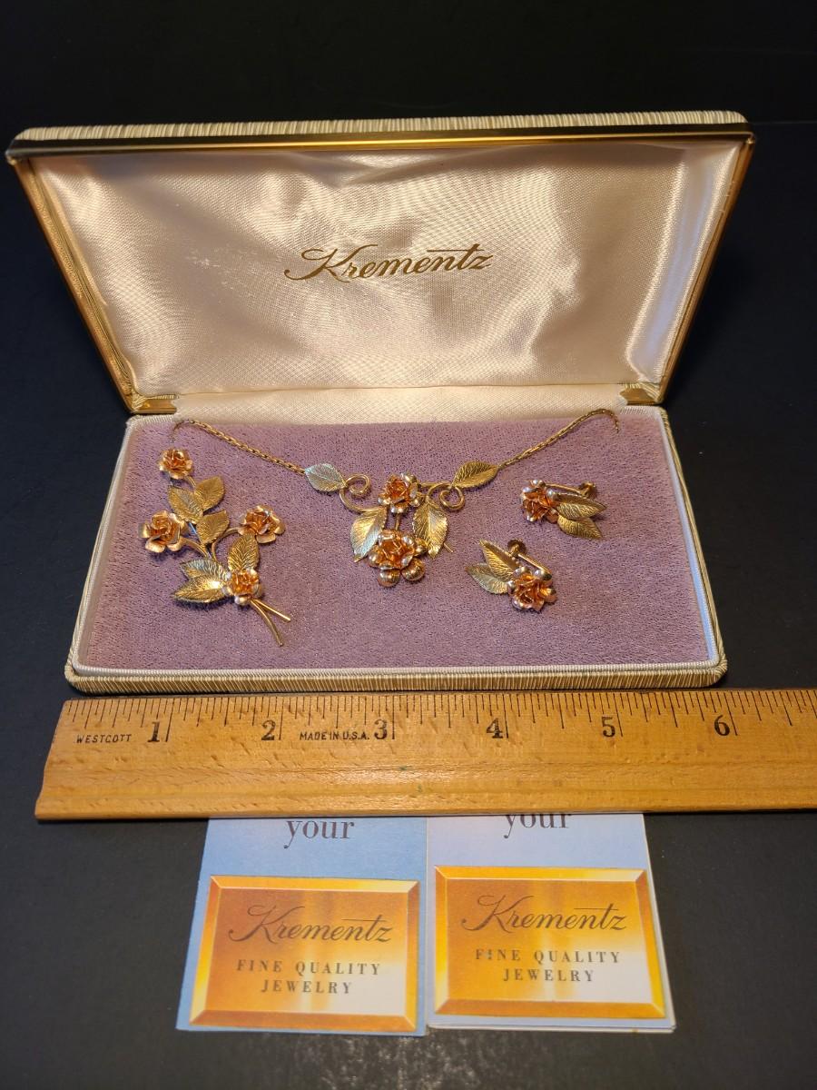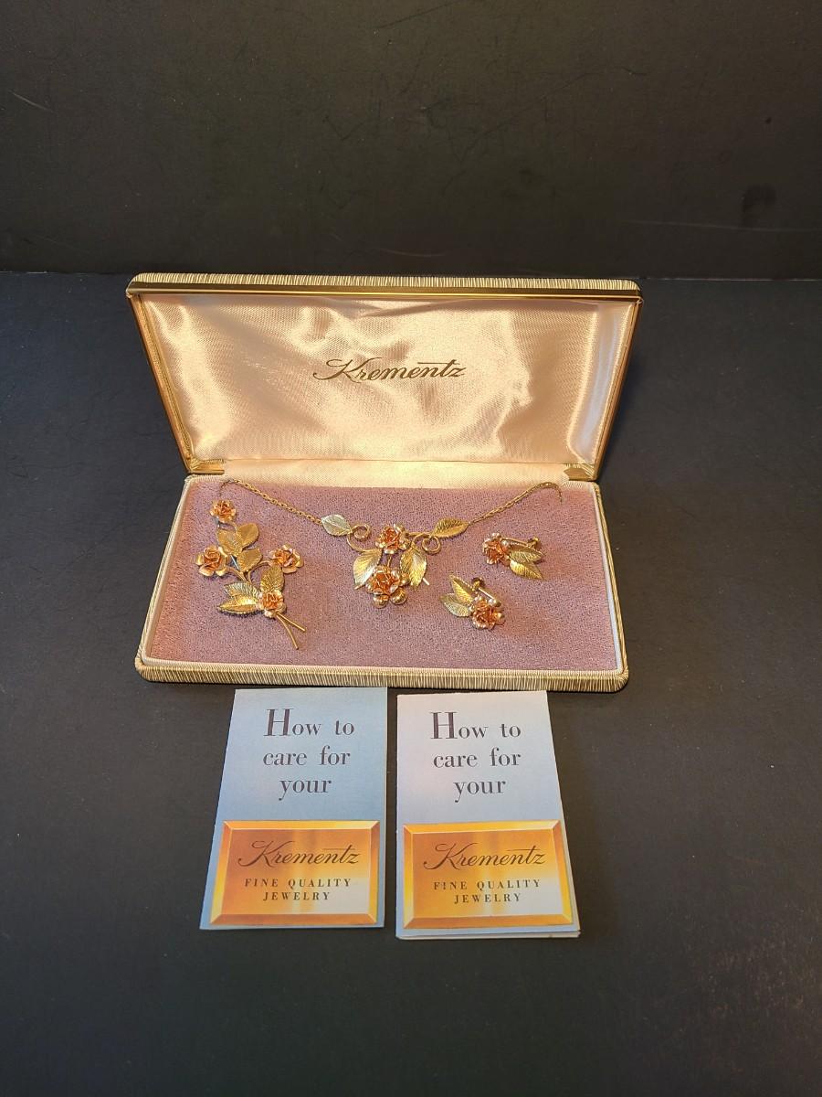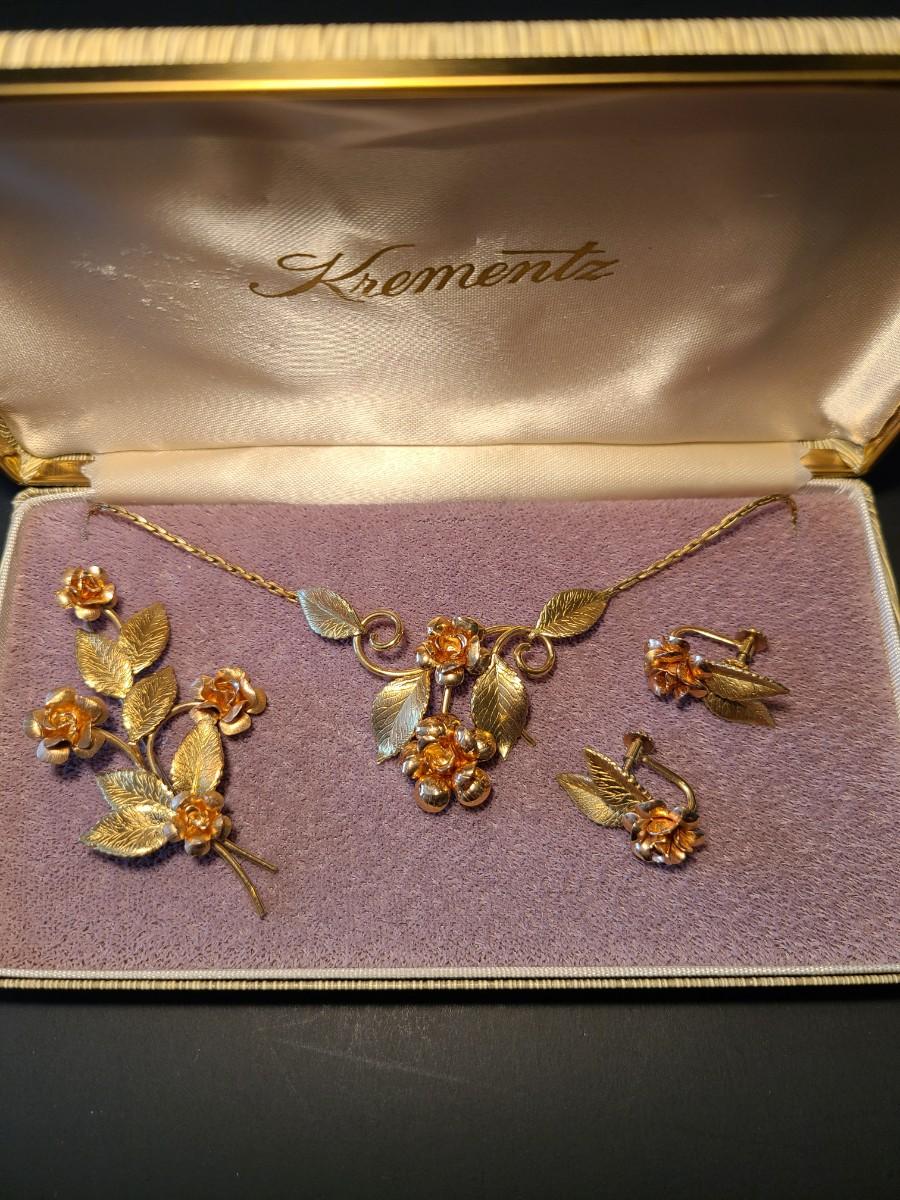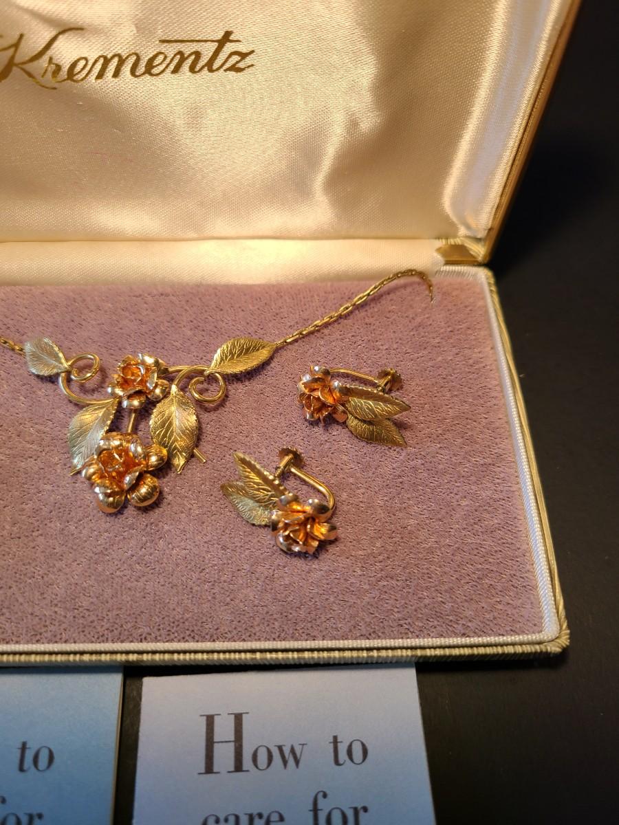 Earrings are 14kt overlay. Both are lovely sets. Earrings are screwbacks. Please see all pictures as they are the best representation of the items. The pictures show condition, measurements if taken, and what is included in the lot. Due to the large amount that we photograph and the time frame, we are not always able to take measurements. All items unless noted, are pre-owned and have been used. If you purchased furniture, you must bring help. We do not allow one person to carry large furniture out on their own. Bring help, tools and a truck for the safety of our client’s homes, and your personal safety. Any damages that result to the property including walls, and floors due to moving of the furniture will be charged to the buyer. Company policy. Thank you.