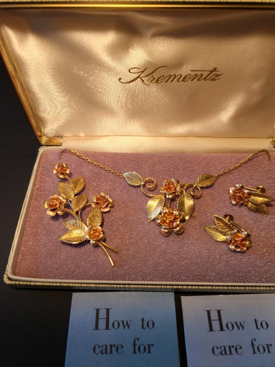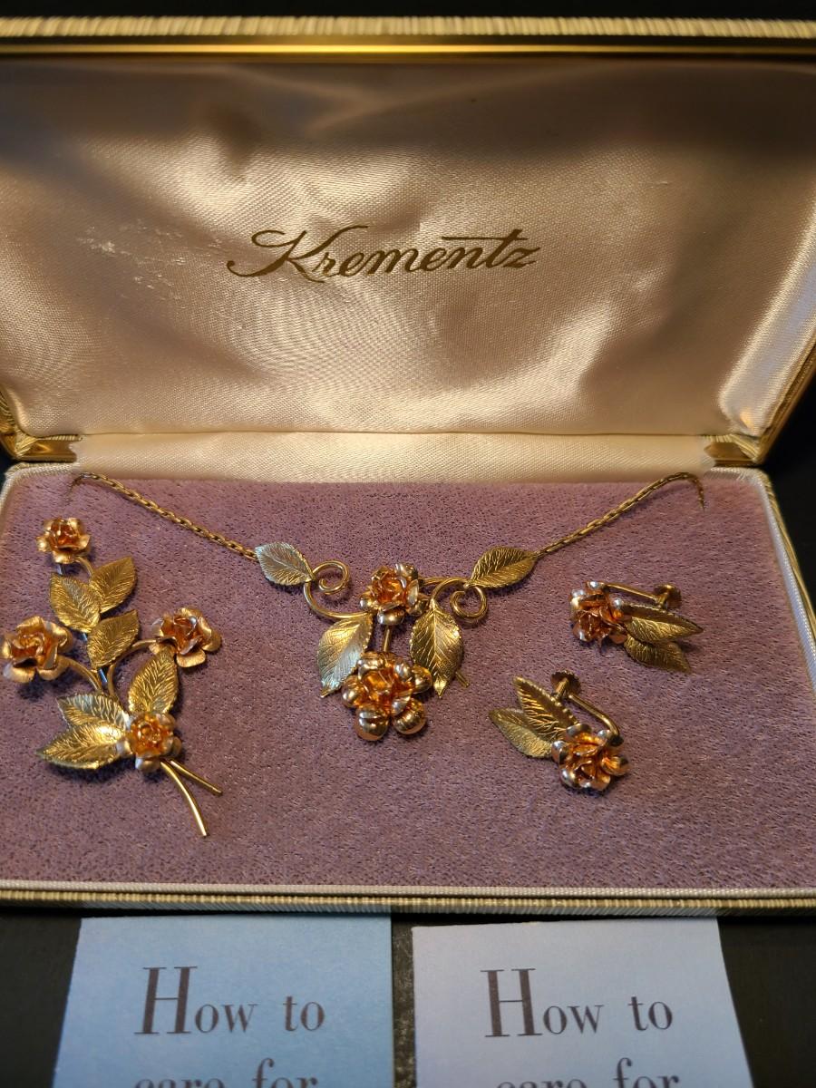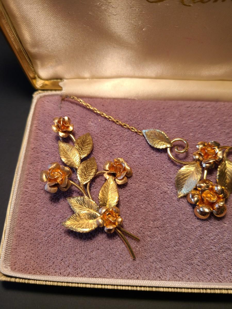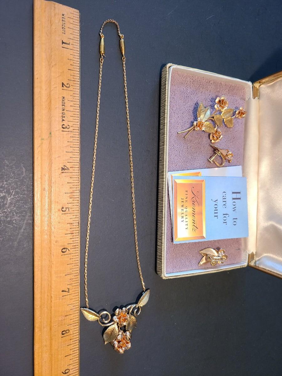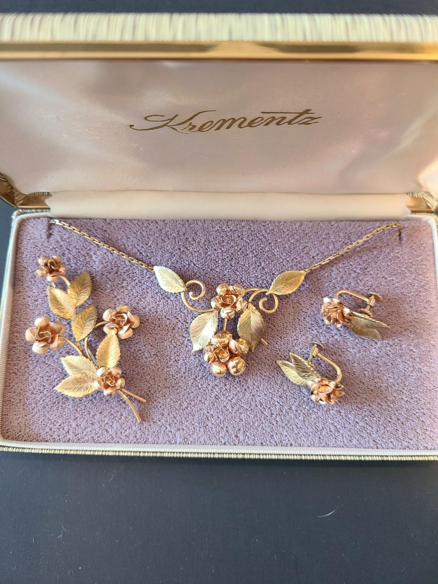 Earrings are 14kt overlay. Both are lovely sets. Earrings are screwbacks. Please see all pictures as they are the best representation of the items. The pictures show condition, measurements if taken, and what is included in the lot. Due to the large amount that we photograph and the time frame, we are not always able to take measurements. All items unless noted, are pre-owned and have been used. If you purchased furniture, you must bring help. We do not allow one person to carry large furniture out on their own. Bring help, tools and a truck for the safety of our client’s homes, and your personal safety. Any damages that result to the property including walls, and floors due to moving of the furniture will be charged to the buyer. Company policy. Thank you.