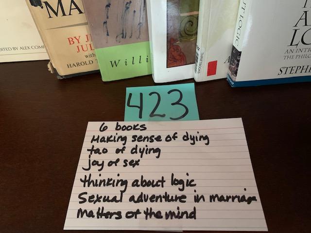 Books: making sense of dying, Tao of dying, joy of sex, grief theory, etc..