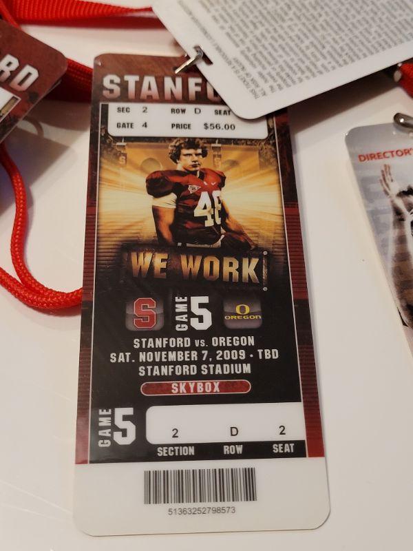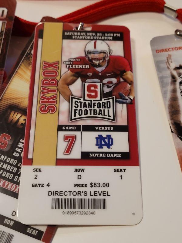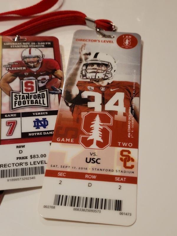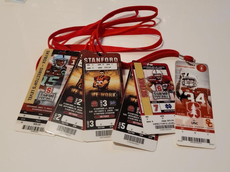Lot #423: Assortment of STANFORD FOOTBALL Director's Level Tall Plastic Tickets w/ Lanyards