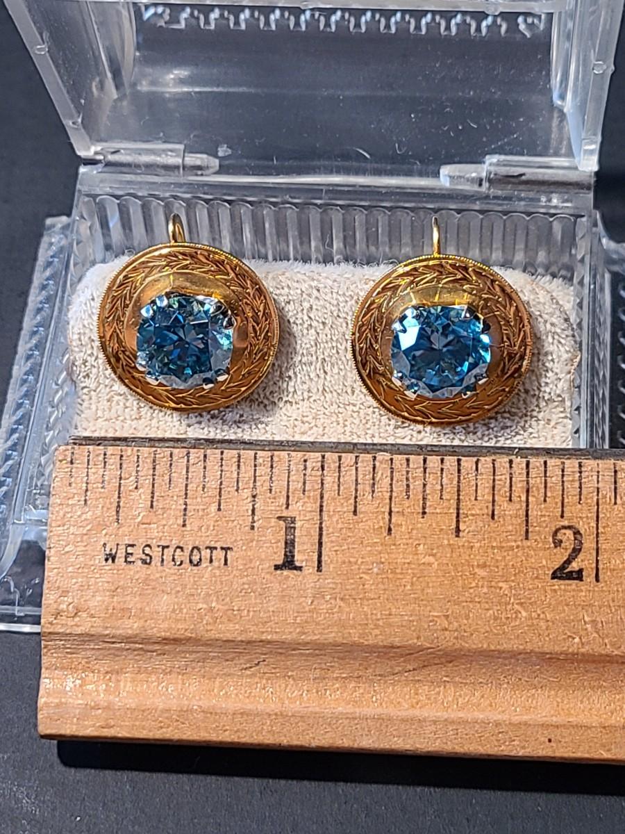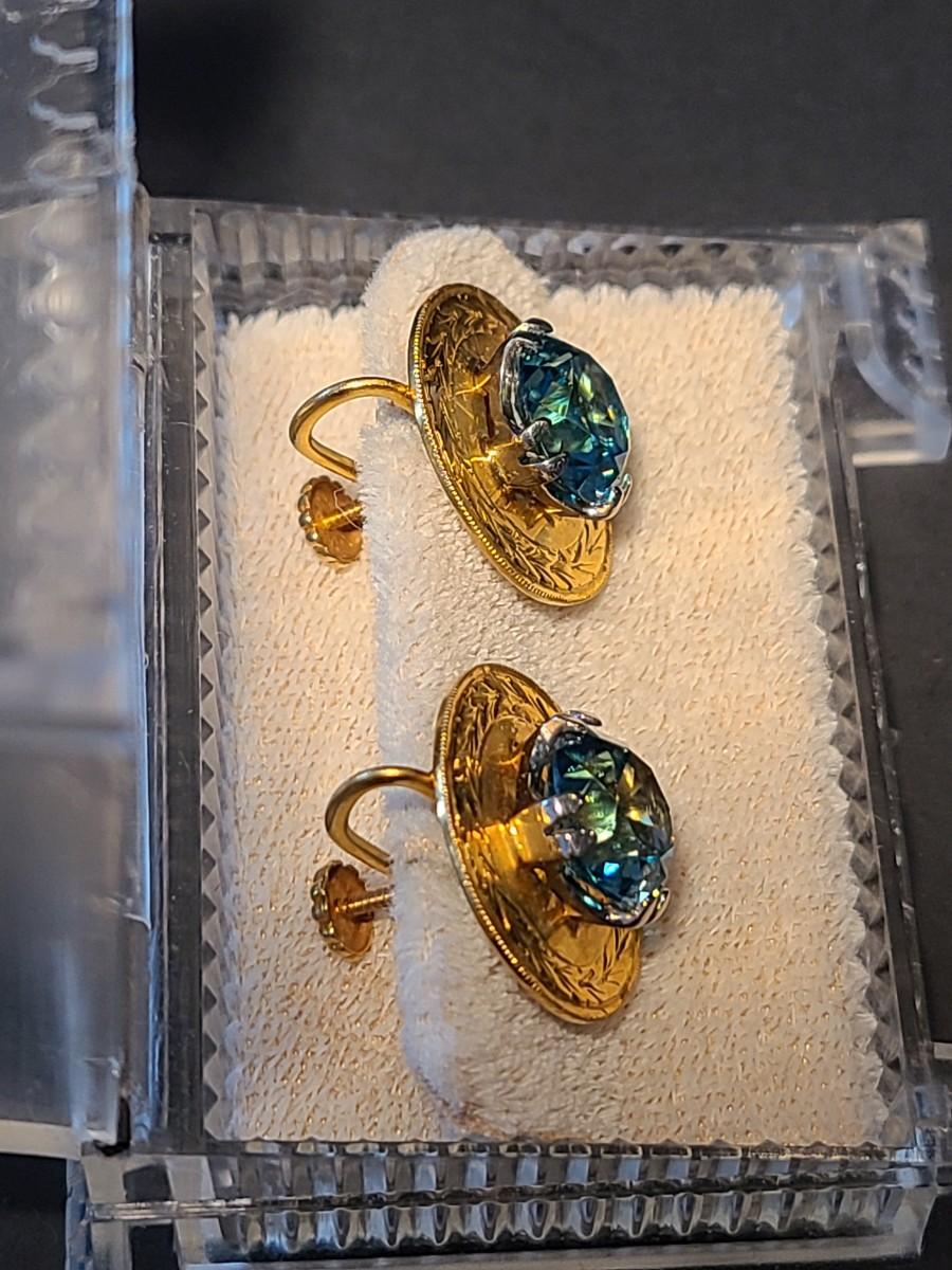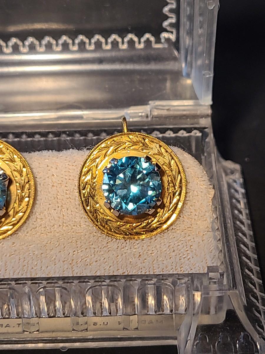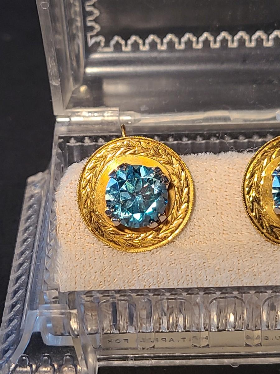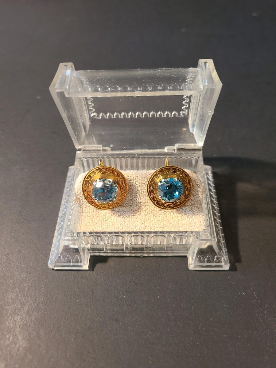 These are gorgeous!! The aquamarine stone shines!! Market 14-kt Please see all pictures as they are the best representation of the items. The pictures show condition, measurements if taken, and what is included in the lot. Due to the large amount that we photograph and the time frame, we are not always able to take measurements. All items unless noted, are pre-owned and have been used. If you purchased furniture, you must bring help. We do not allow one person to carry large furniture out on their own. Bring help, tools and a truck for the safety of our client’s homes, and your personal safety. Any damages that result to the property including walls, and floors due to moving of the furniture will be charged to the buyer. Company policy. Thank you.
