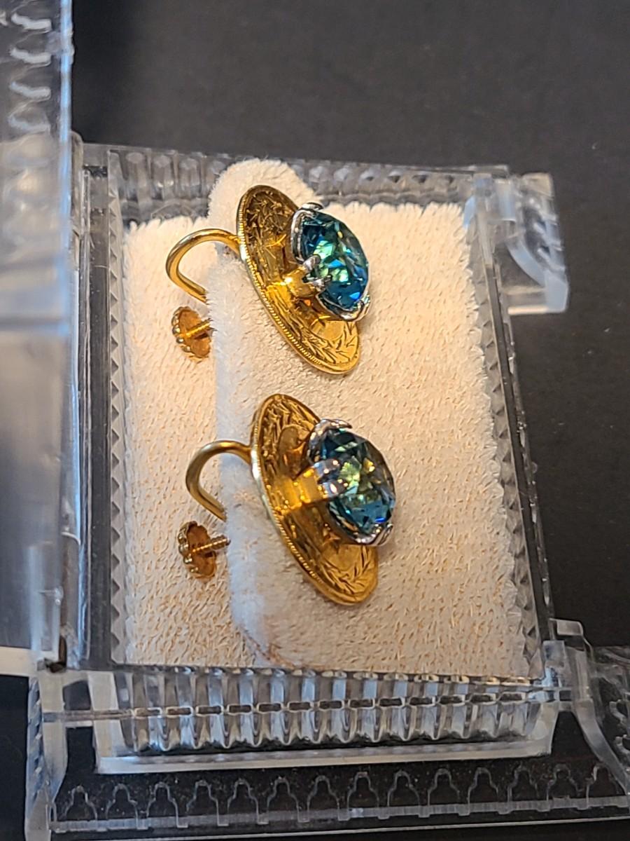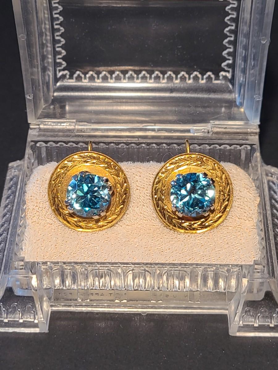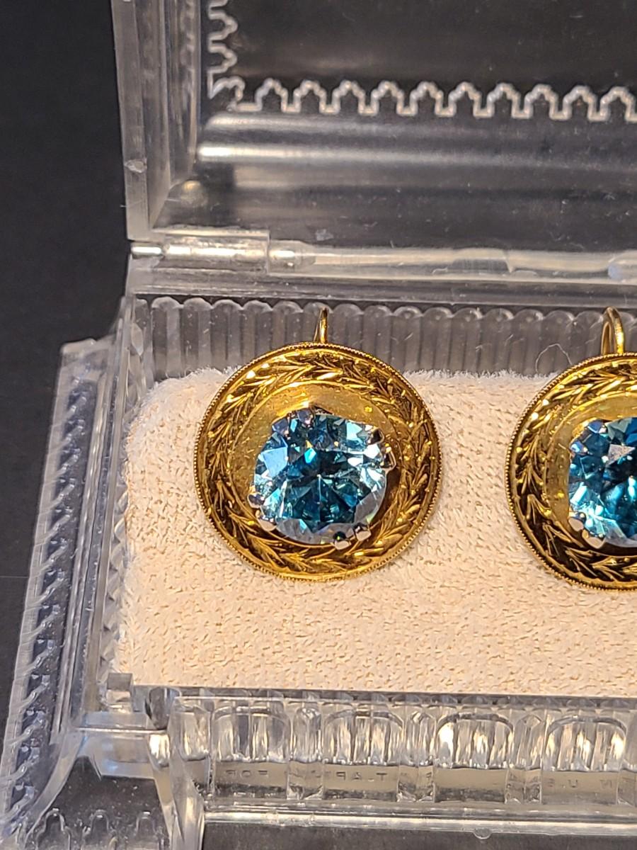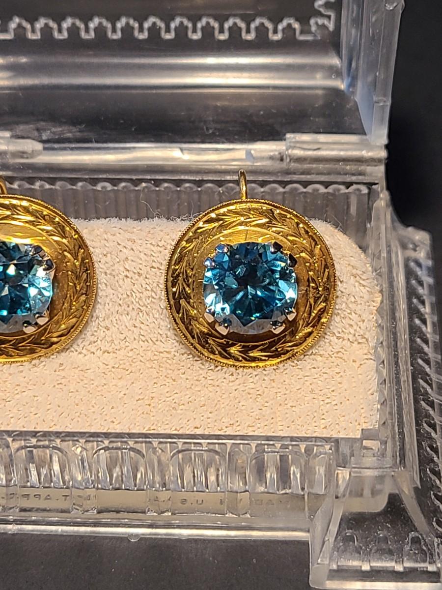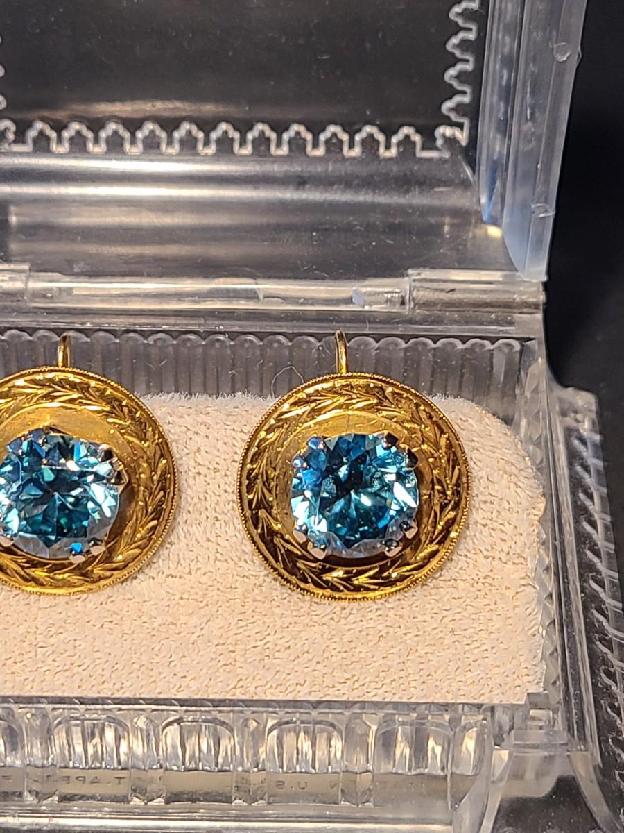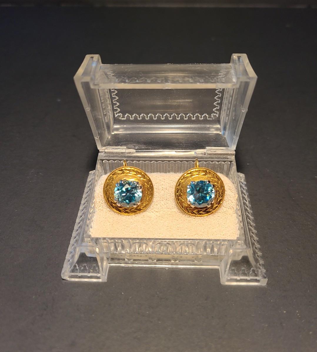 These are gorgeous!! The aquamarine stone shines!! Market 14-kt Please see all pictures as they are the best representation of the items. The pictures show condition, measurements if taken, and what is included in the lot. Due to the large amount that we photograph and the time frame, we are not always able to take measurements. All items unless noted, are pre-owned and have been used. If you purchased furniture, you must bring help. We do not allow one person to carry large furniture out on their own. Bring help, tools and a truck for the safety of our client’s homes, and your personal safety. Any damages that result to the property including walls, and floors due to moving of the furniture will be charged to the buyer. Company policy. Thank you.