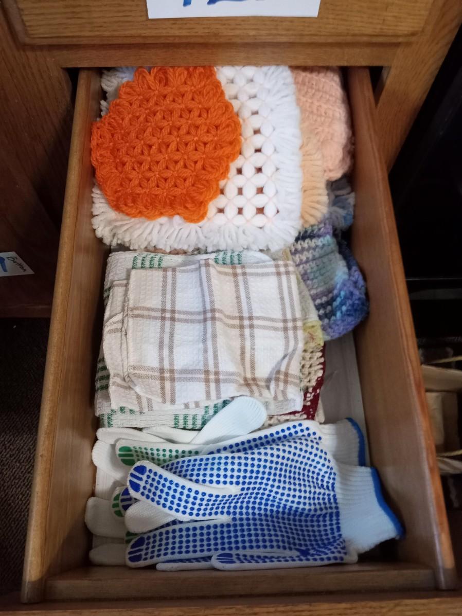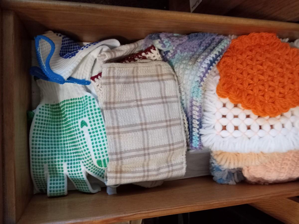 LOT 423  KITCHEN TOWELS, DISH CLOTHS, APRON AND HOT PADS (Kitchen)