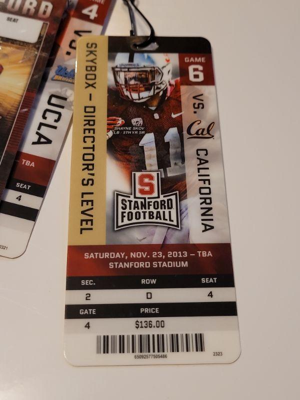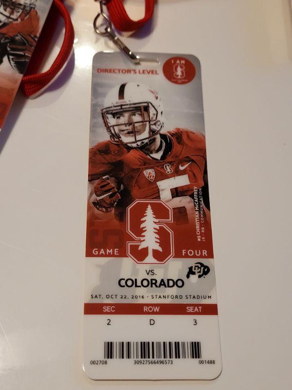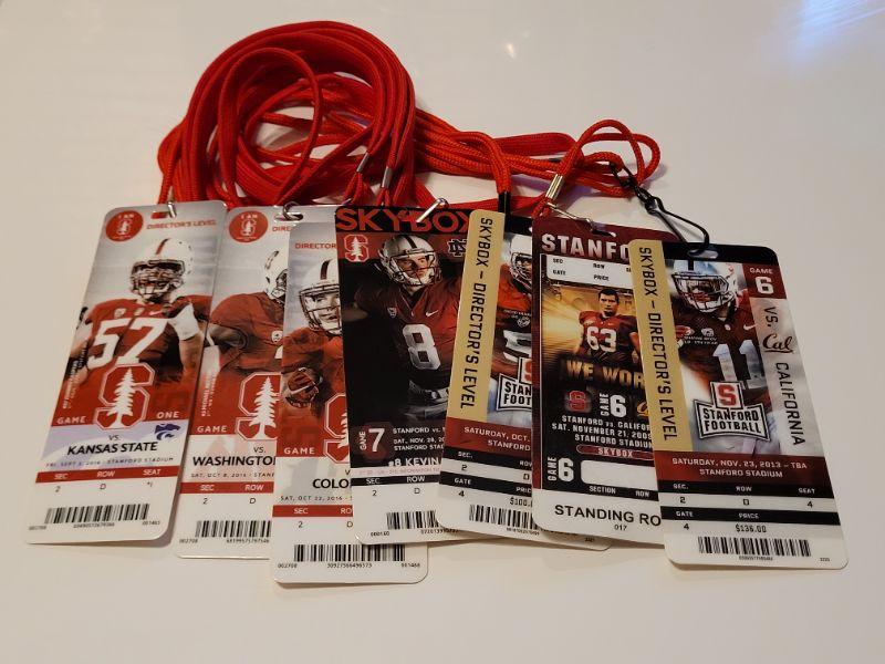 Lot #424: Assortment of STANFORD FOOTBALL Director's Level Tall Plastic Tickets w/ Lanyards