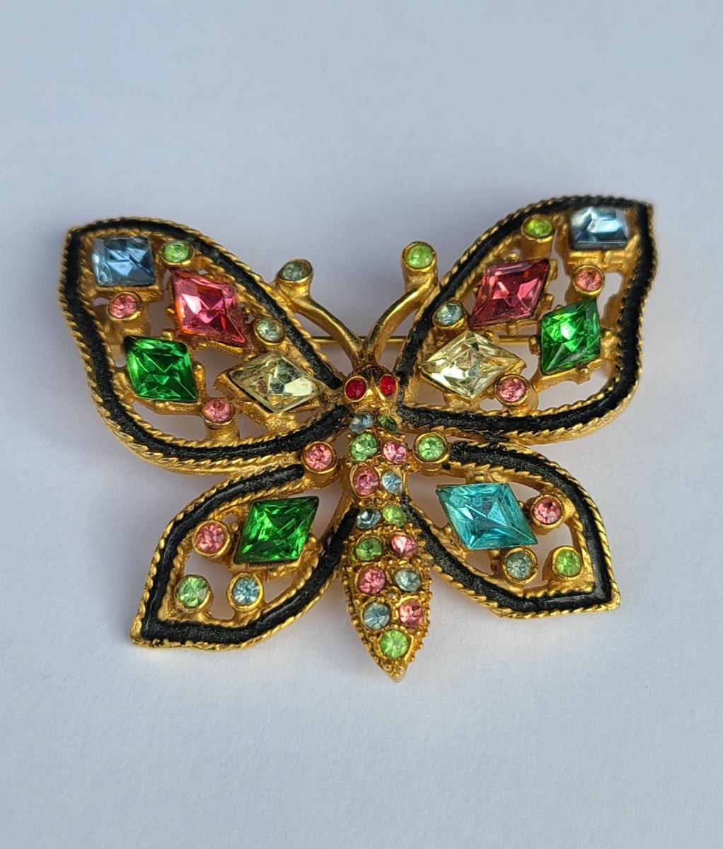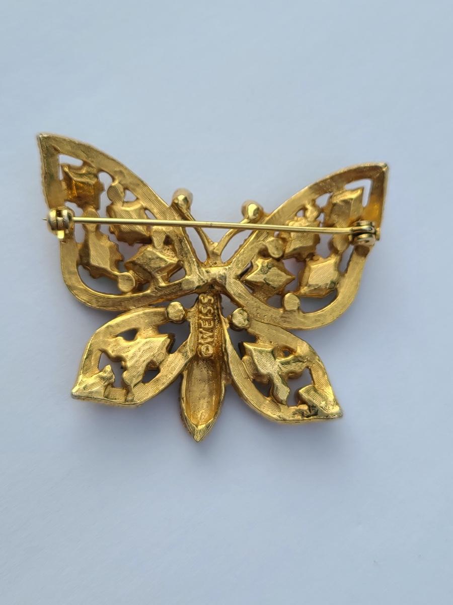 Lot 424: HTF Vintage Weiss Multicolor Stone Butterly Brooch