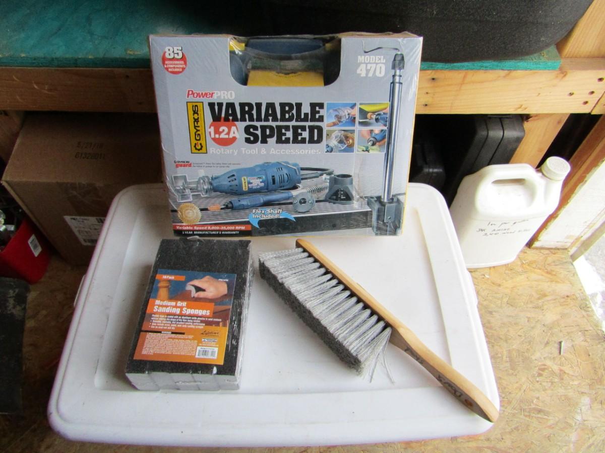 ROTARY TOOL WITH ATTACHMENTS, SANDING BLOCKS AND BENCH BRUSH