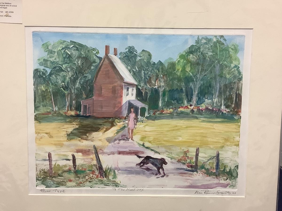 E - 424  Signed & Matted Monotype Art by Jean Ranney Smith  2003 “ To The Mailbox “
