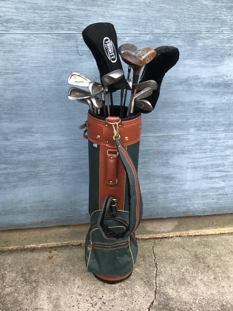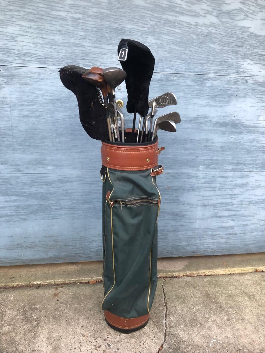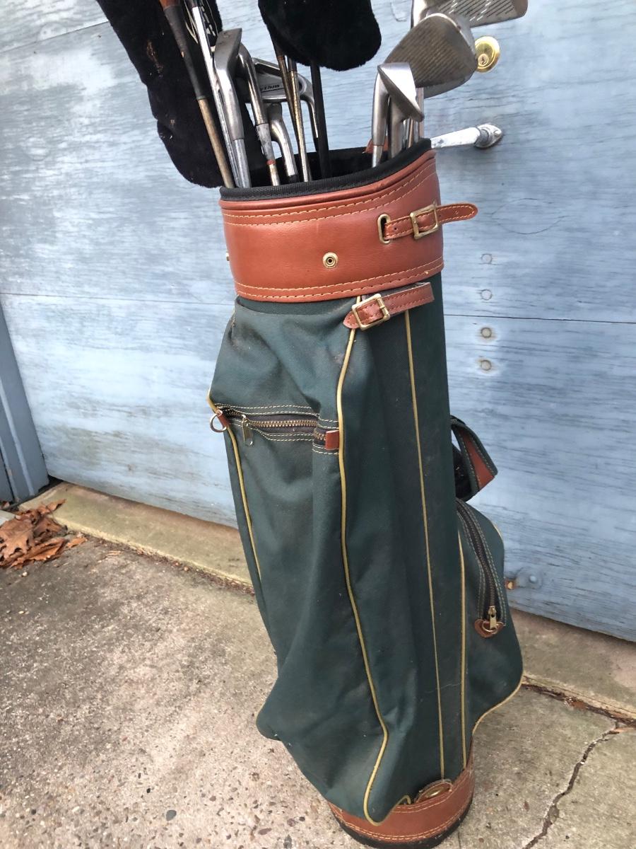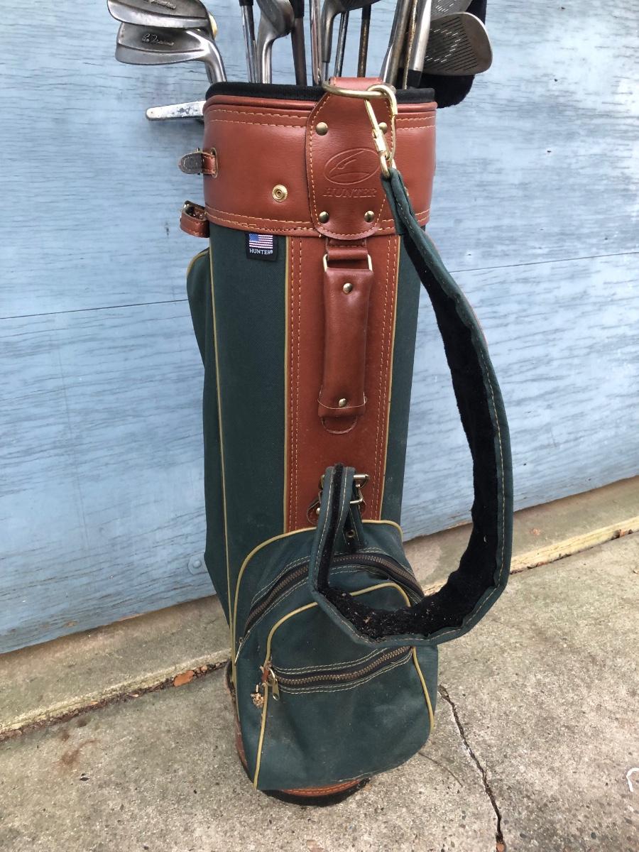 LOT 424G: Hunter Golf Bag w/ Spalding, Cougar & More Clubs