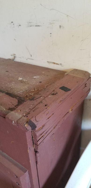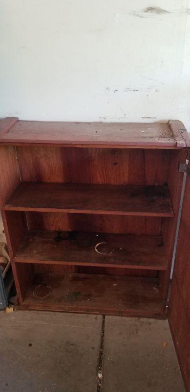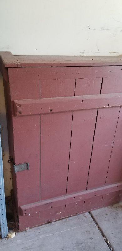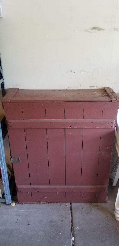 LOT #425: Vintage Red Wood Storage Cabinet w/ Latch feature