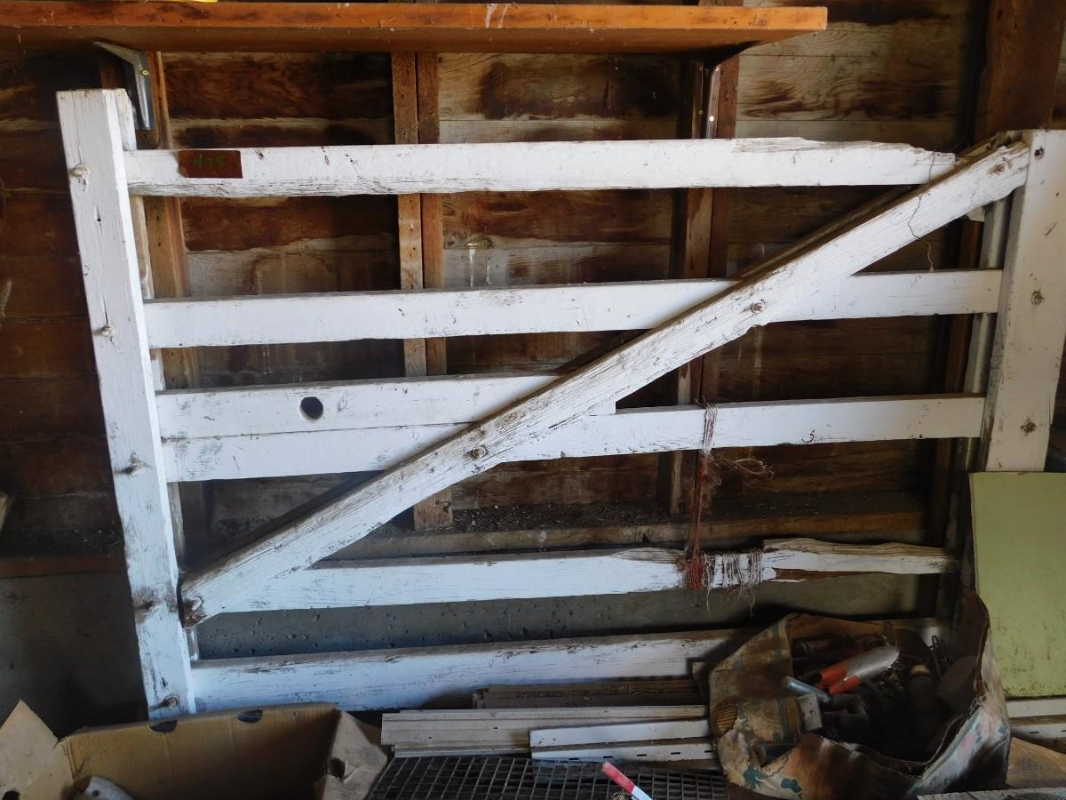 TWO OLD WHITE WOODEN GATES 54" X 74.5" AND 48" X 49"