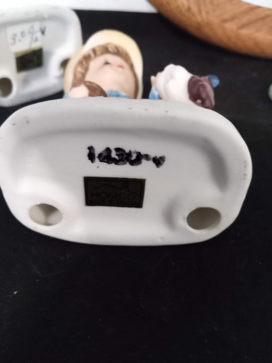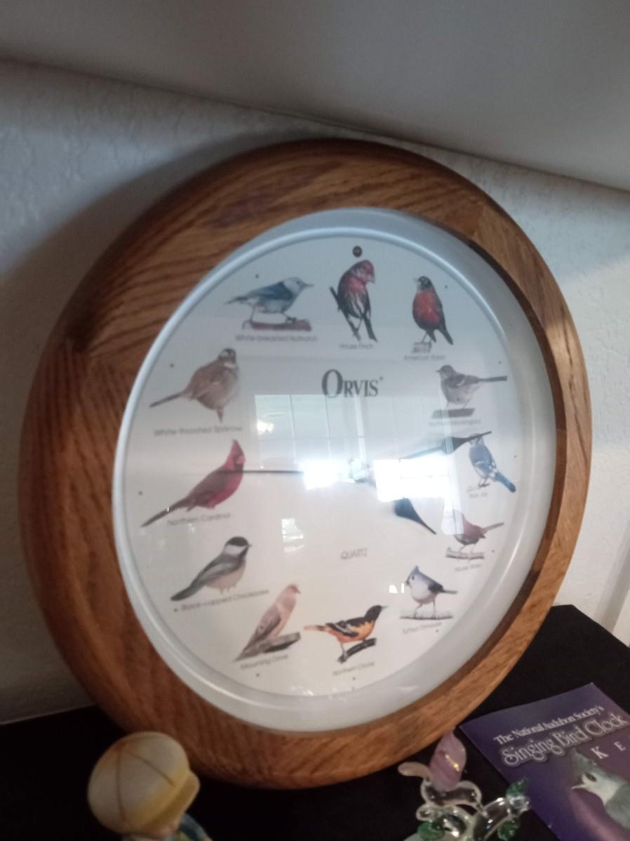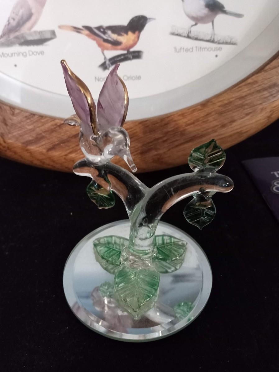 LOT 426  SINGING BIRD CLOCK, FIGURINES AND GLASS HUMMINGBIRD FIGURE  (Kitchen)