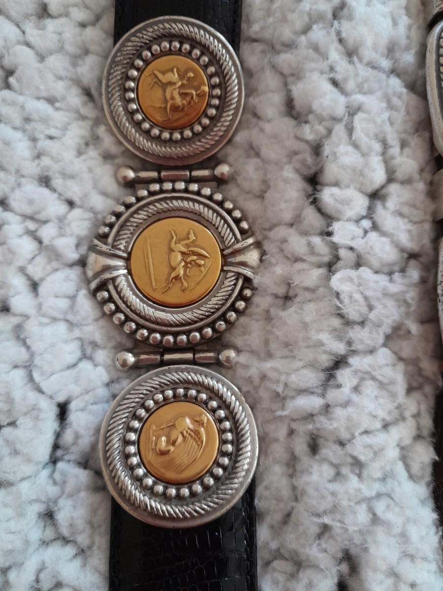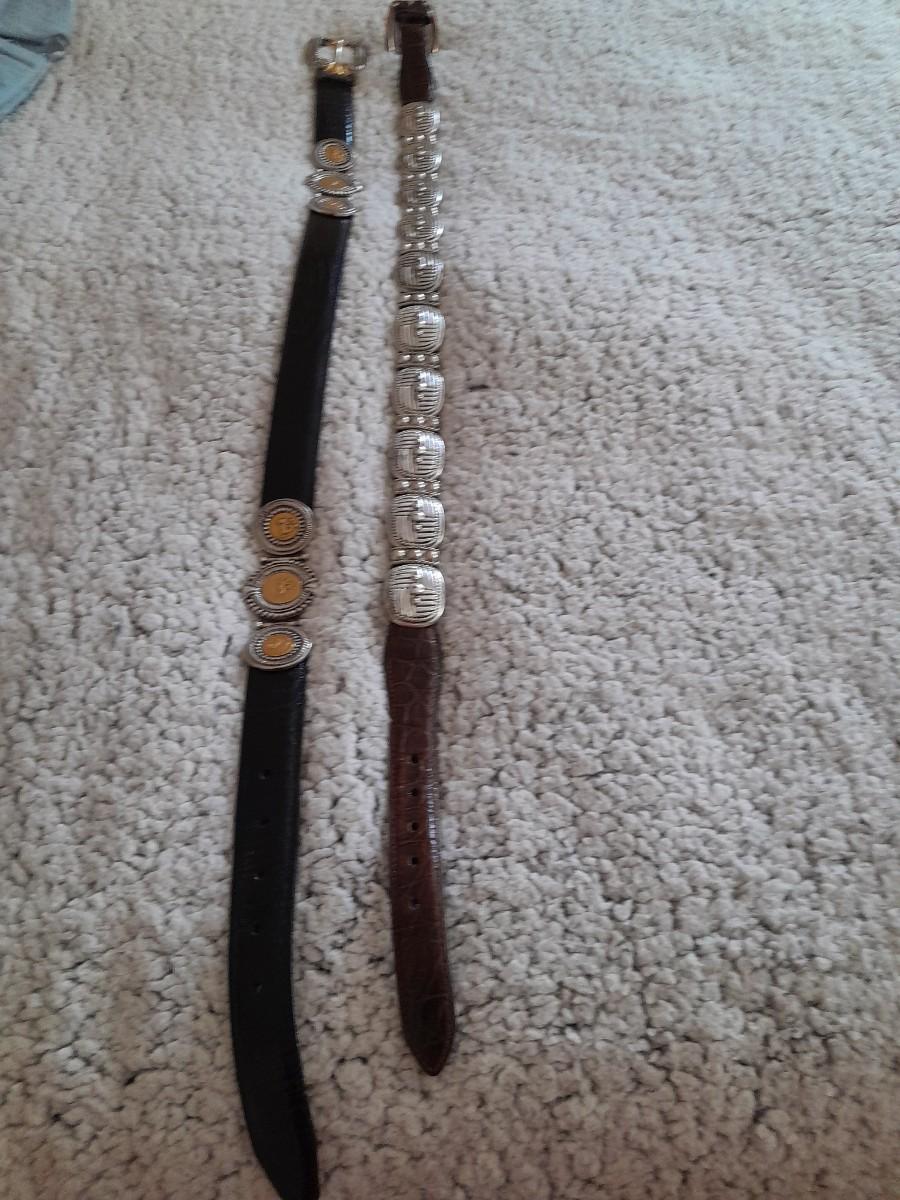 TWO MEDIUM STYLE WOMEN'S LEATHER WITH DECORATIVE METAL BELTS