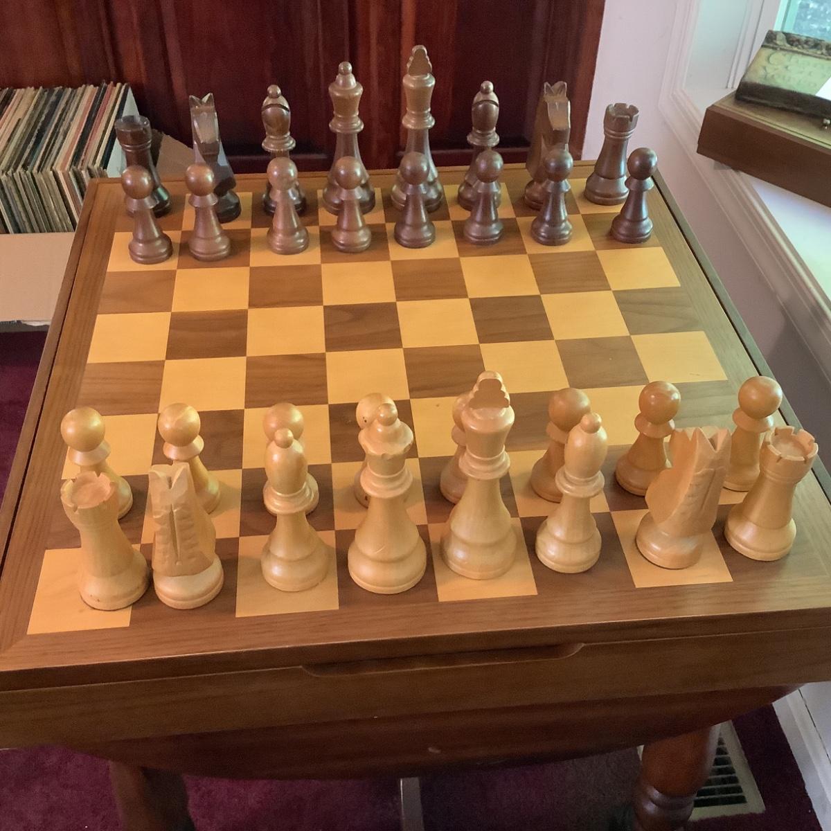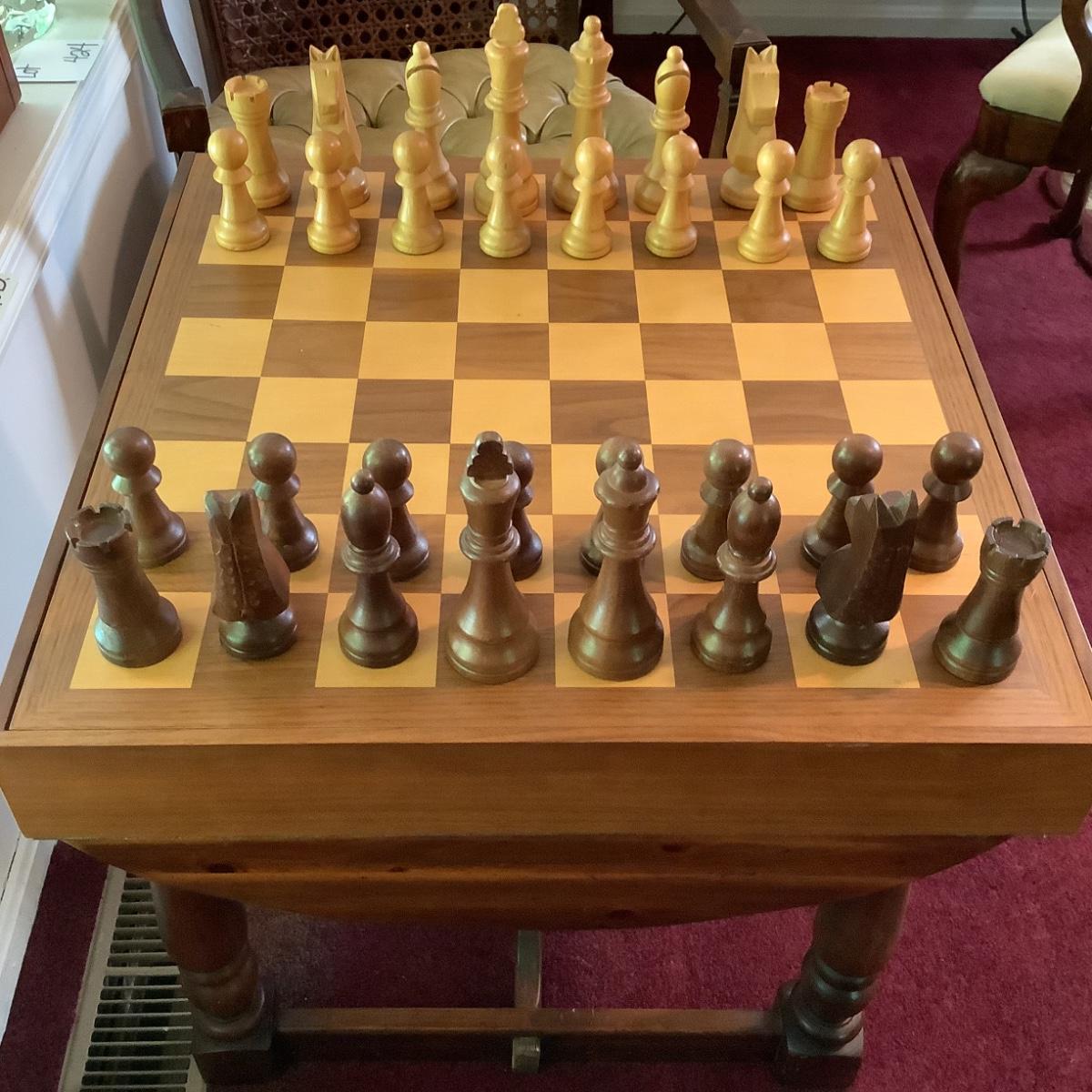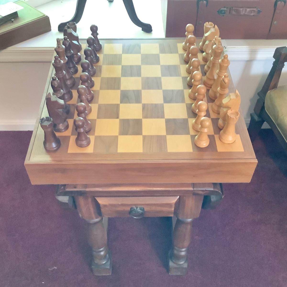 Lot 426 Vintage Wooden Chess/Checkers Set & Small Drop-Leaf Table