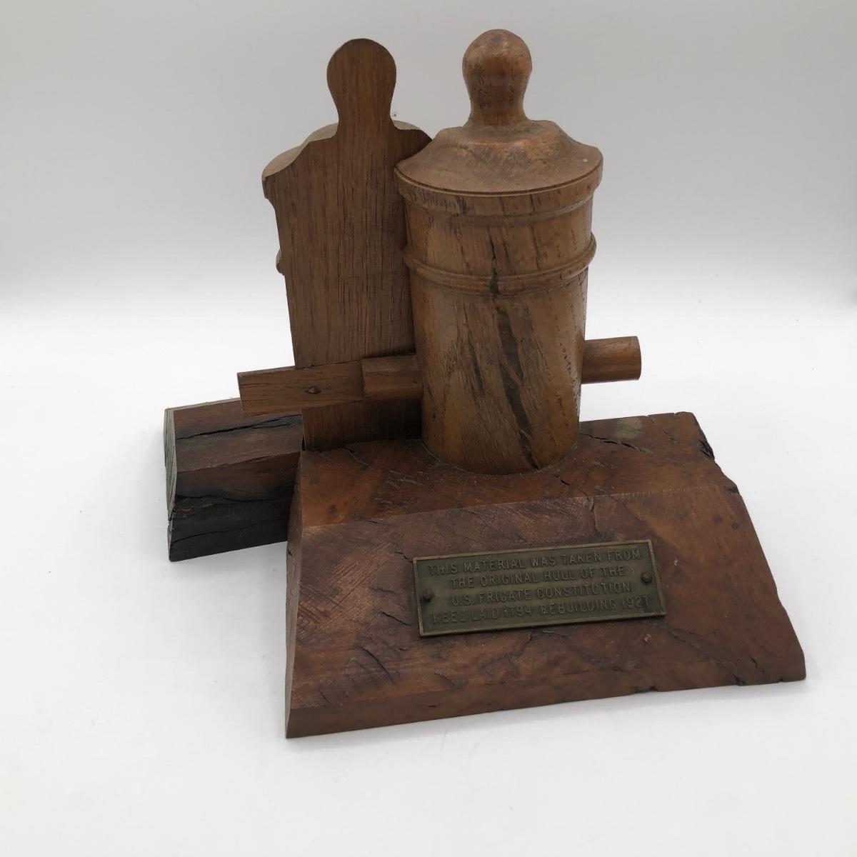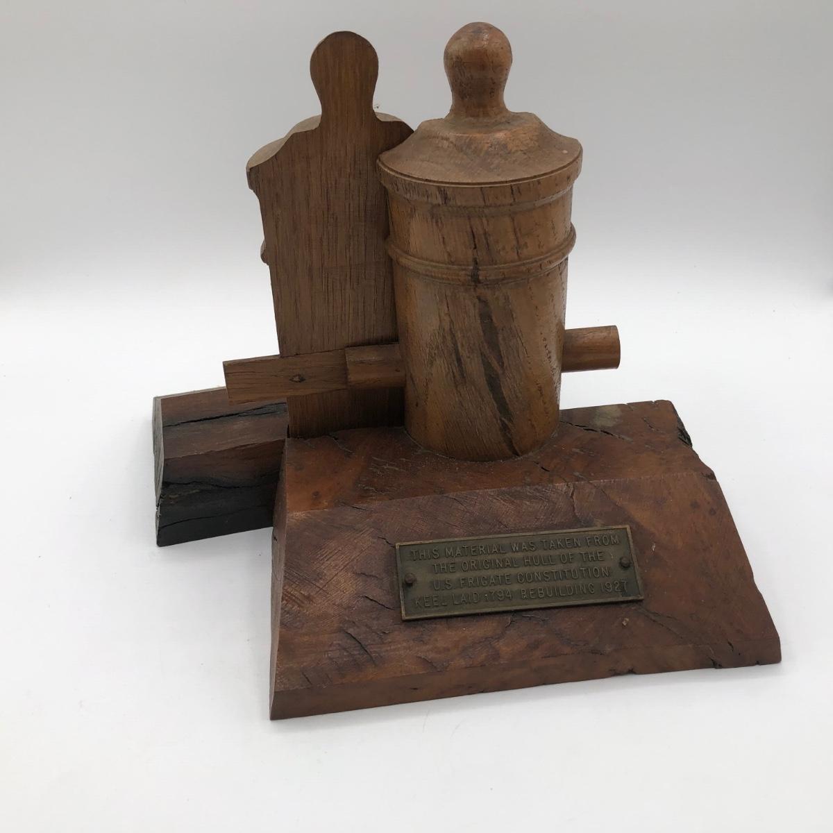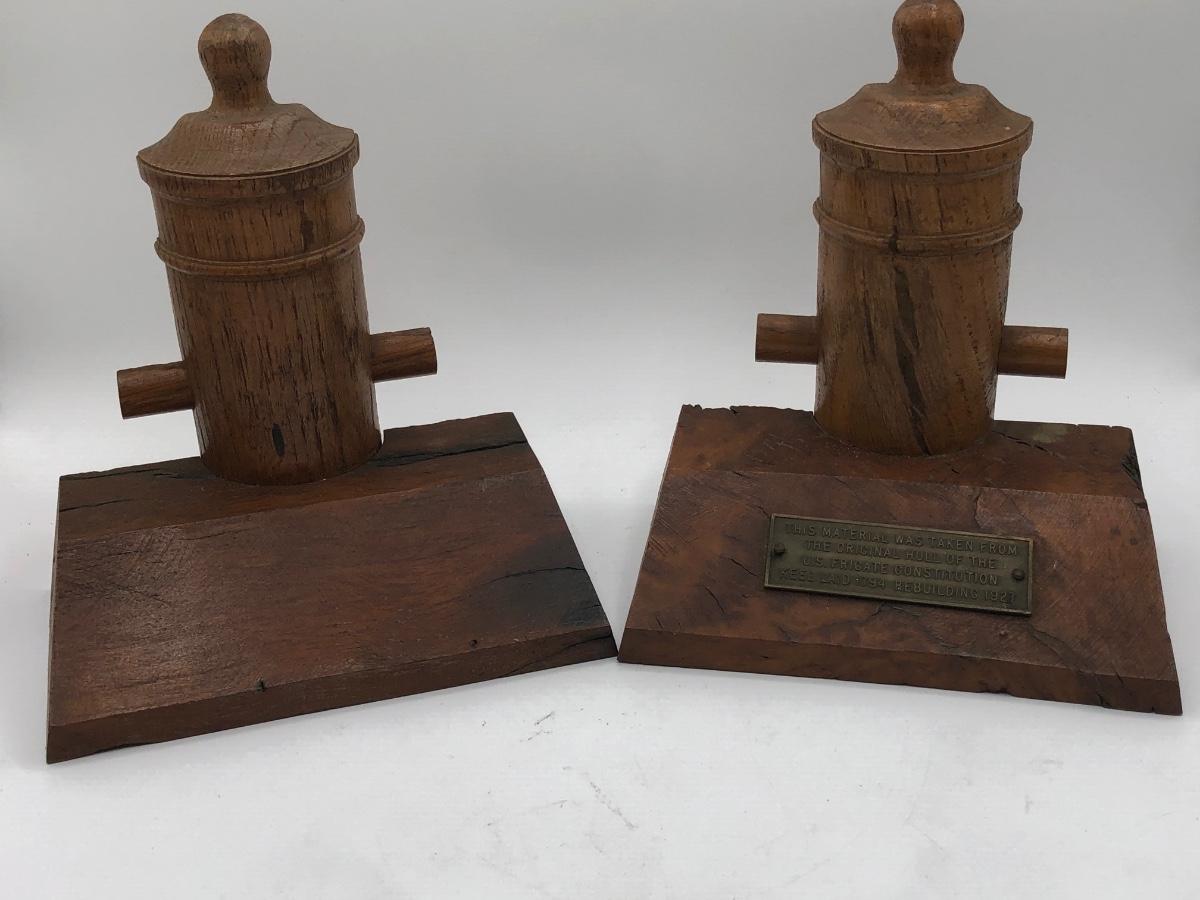 LOT 426L: Vintage Bookends made from Reclaimed Wood from the Original Hull of the US Frigate Constitution