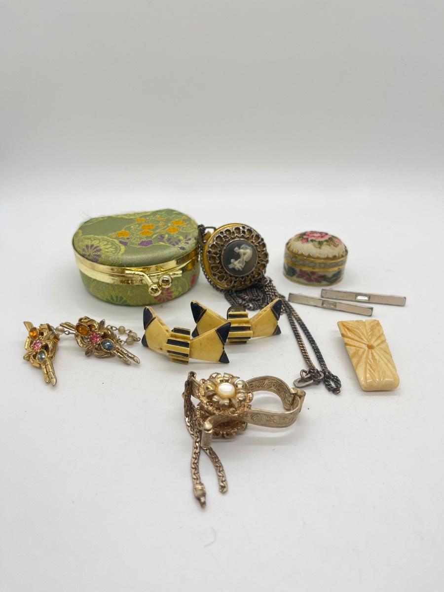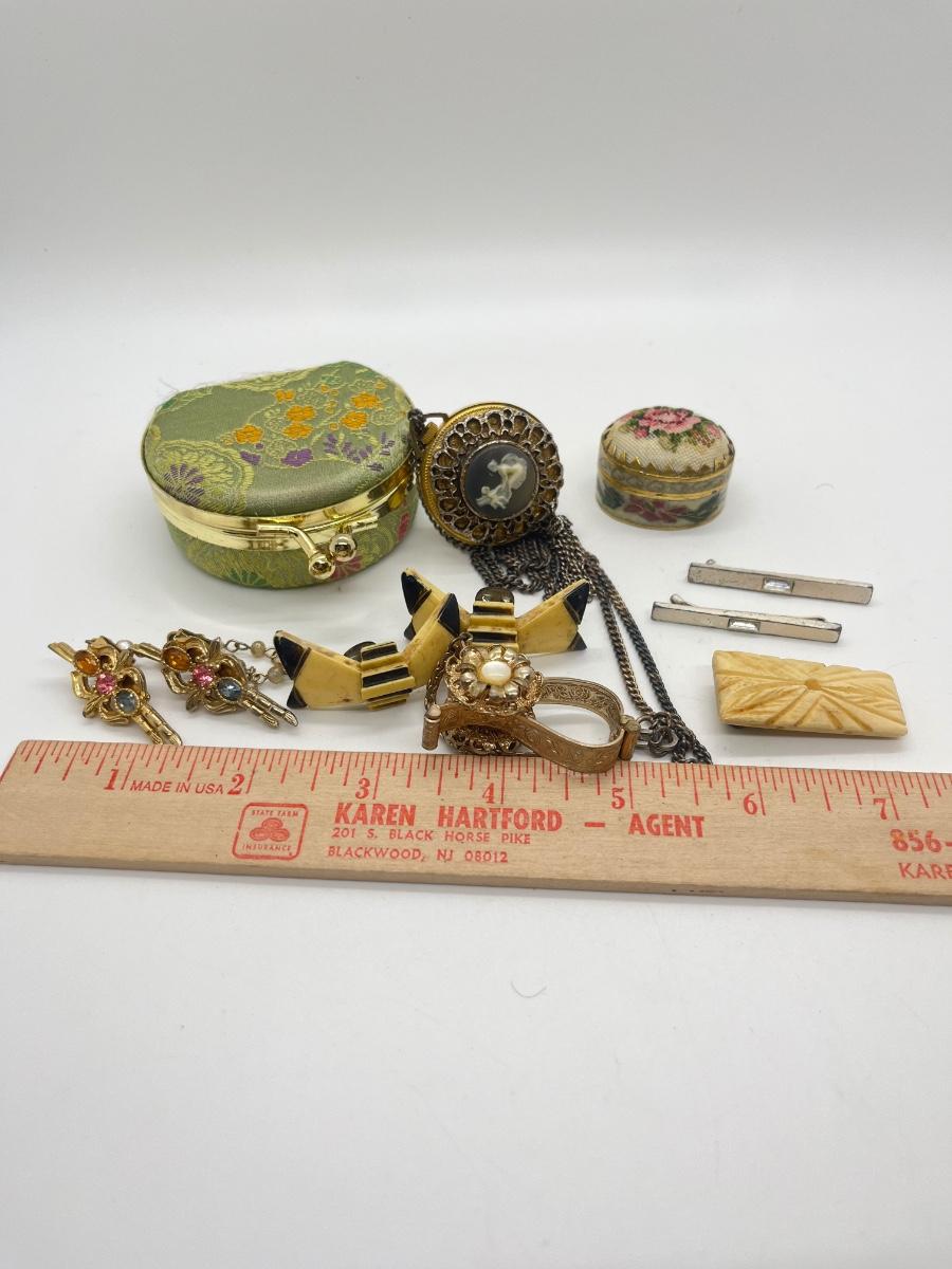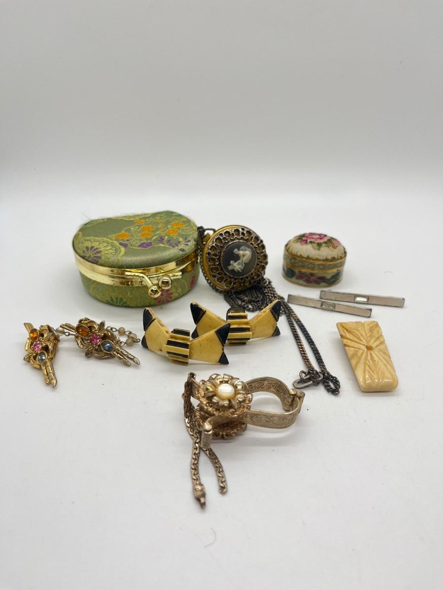 LOT 427J: Trice Watch Pendant, Vintage Glove Clip, Pill Box and More