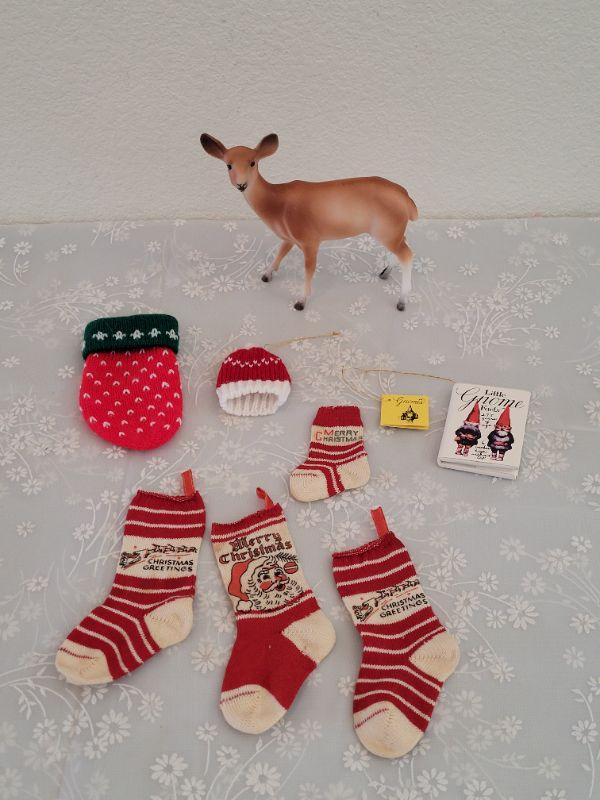 Lot 427: Vintage Small Christmas Stockings, Knome Book, Deer