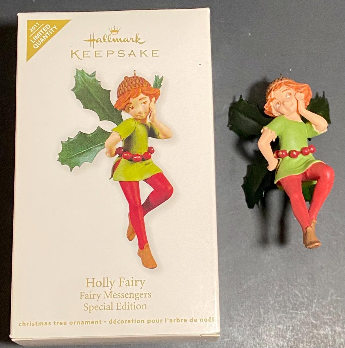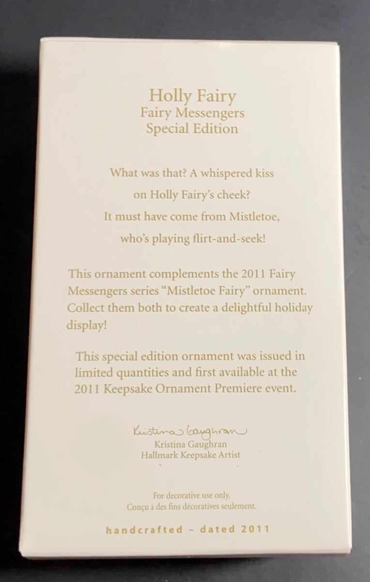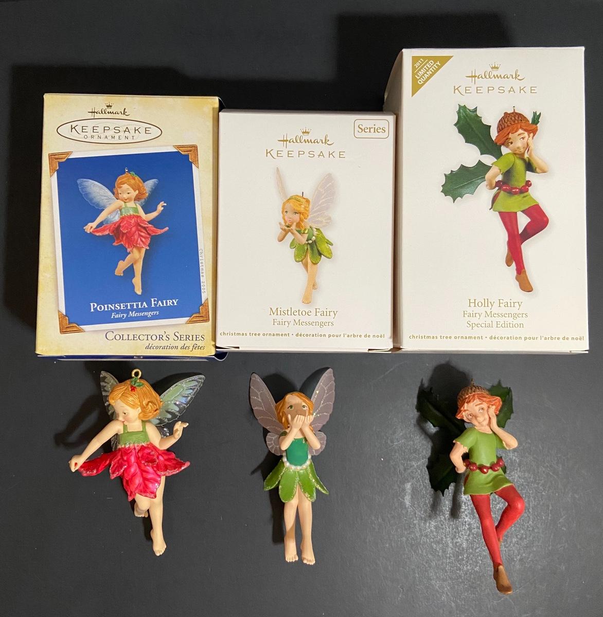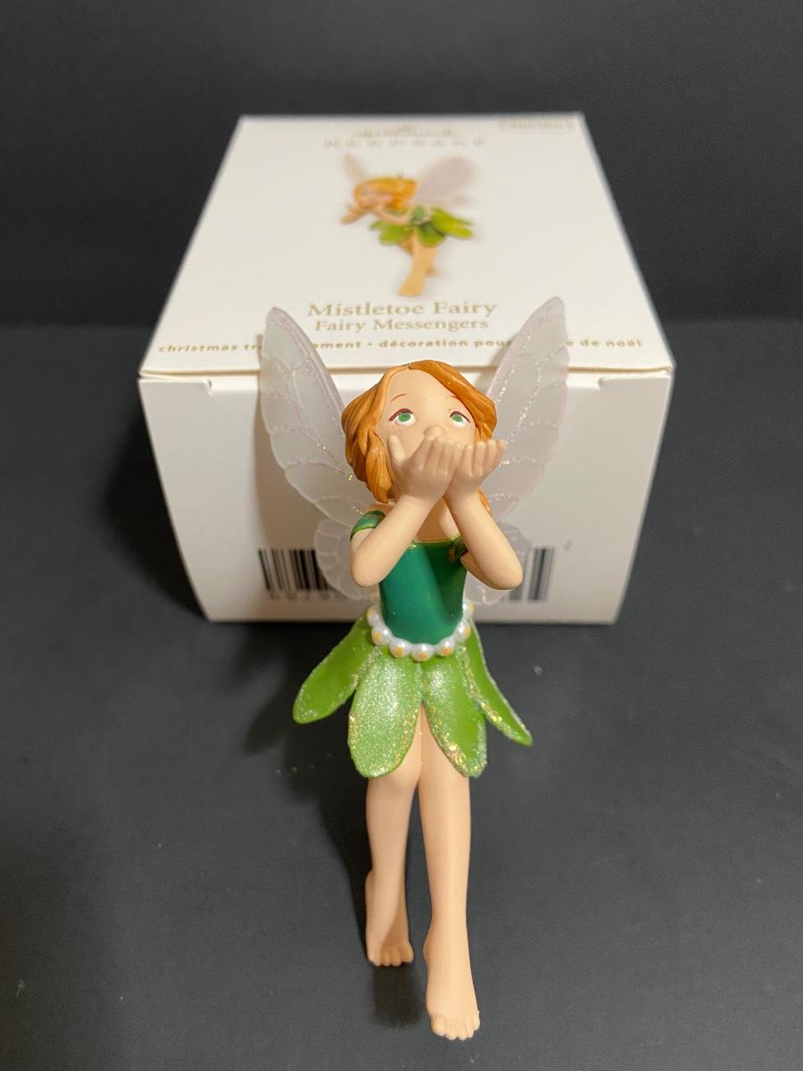 Poinsettia, Holly and Mistletoe Fairies. All Holiday items in this auction are as-seen. The client collected a lot of holiday pieces and some are new in box, some were displayed once and come with original box, and some have been displayed and come with no box. They are all pre-owned in some fashion and have been stored in an attic or on shelf in library. Please see all pictures. The pictures show condition, measurements if taken, and what is included in the lot. Due to the large amount that we photograph and the time frame, we are not always able to take measurements. All items unless noted, are pre-owned and have been used. Thank you