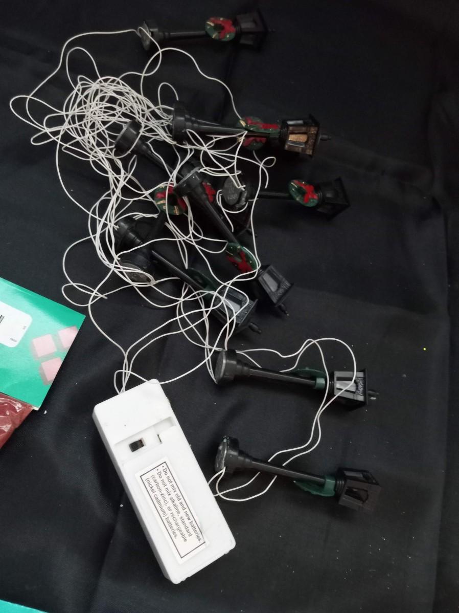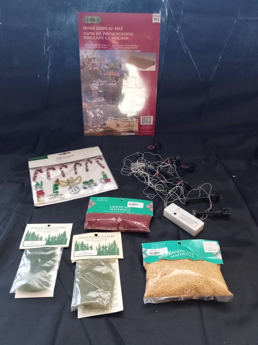 GROUND COVER/FOLIAGE, DEPT 56 HOLIDAY TINSEL TRIM AND LANTERN STREET LIGHTS, LEMAX MOSS DISPLAY MAT
