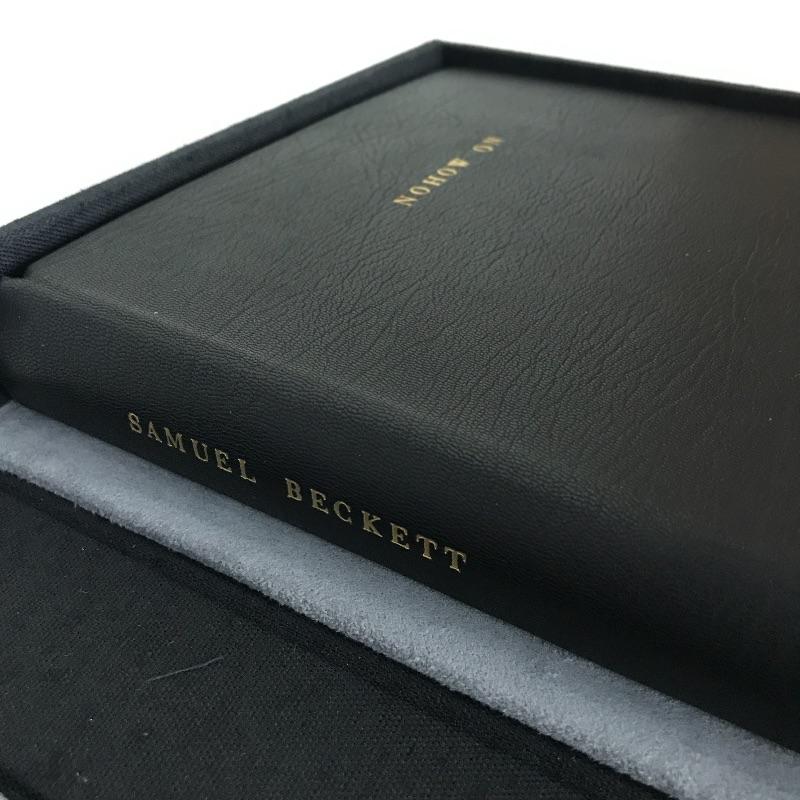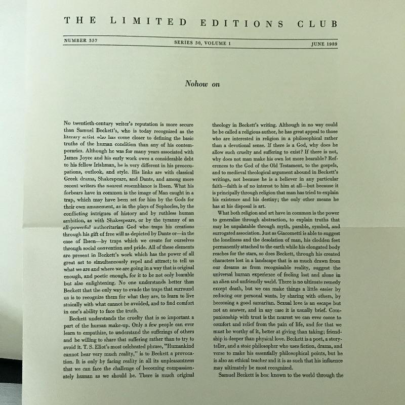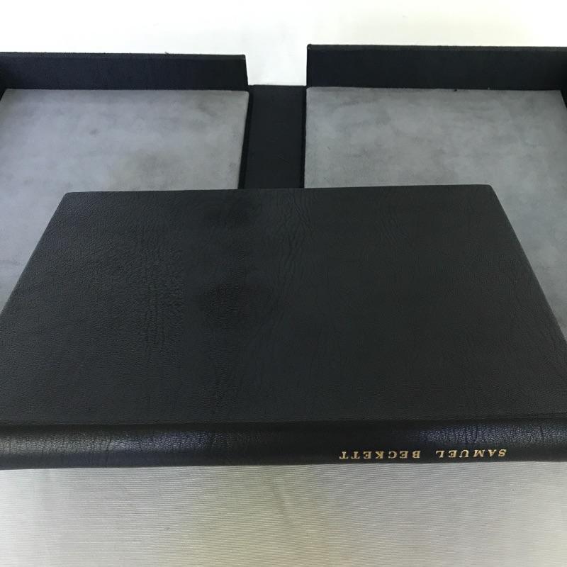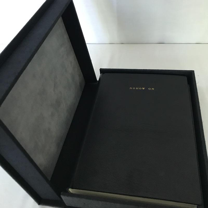 Leather book called Nohow On by Samuel Becket is presented in a felt lined clamshell case. Excellent condition. Measures 12.5” x 8.5”. Published by Limited Editions Club. Shipping available
