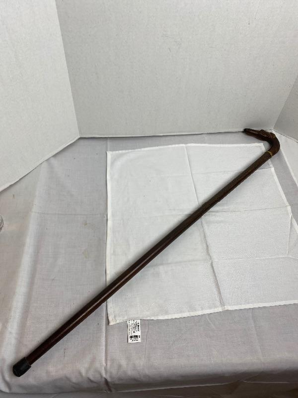 Antique Hand carved Wood Greyhound Handle Walking Stick Cane rubber tip measuring 36” long