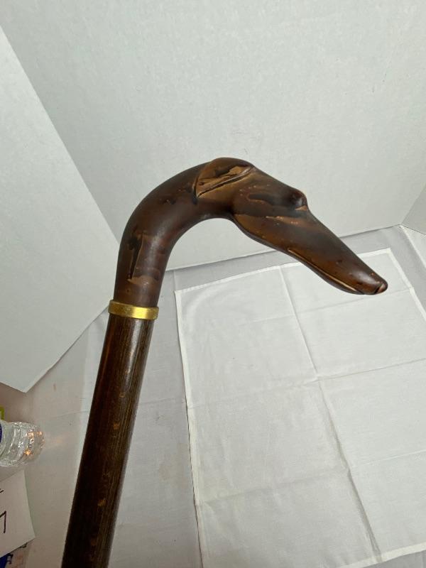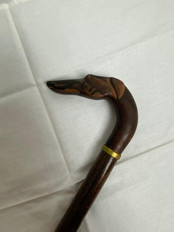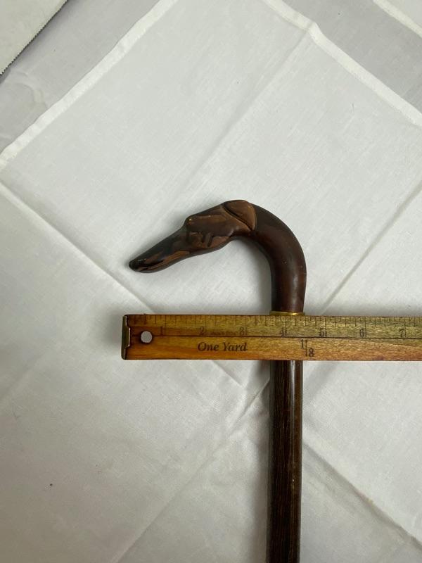 LOT # 427 Antique Handcarved Wood Greyhound Handle Walking Stick Cane