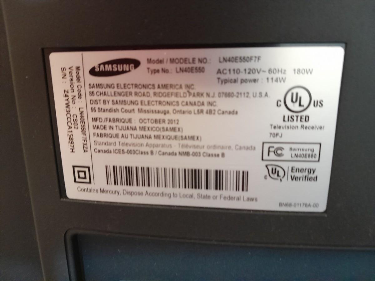 RCA DVD PLAYER MODEL DRC 220 N AND SAMSUNG 40" TELEVISION MODEL NUMBER LN40E550F7FXZA