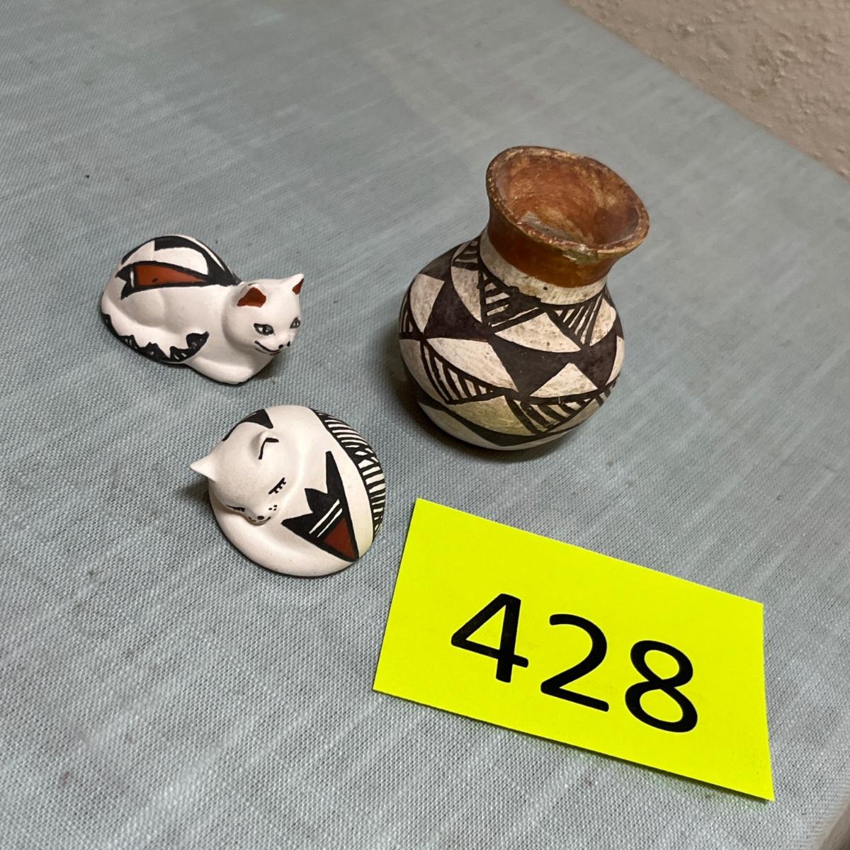 The cats are newer and signed, the vase is older and not signed. Vase has some damage.