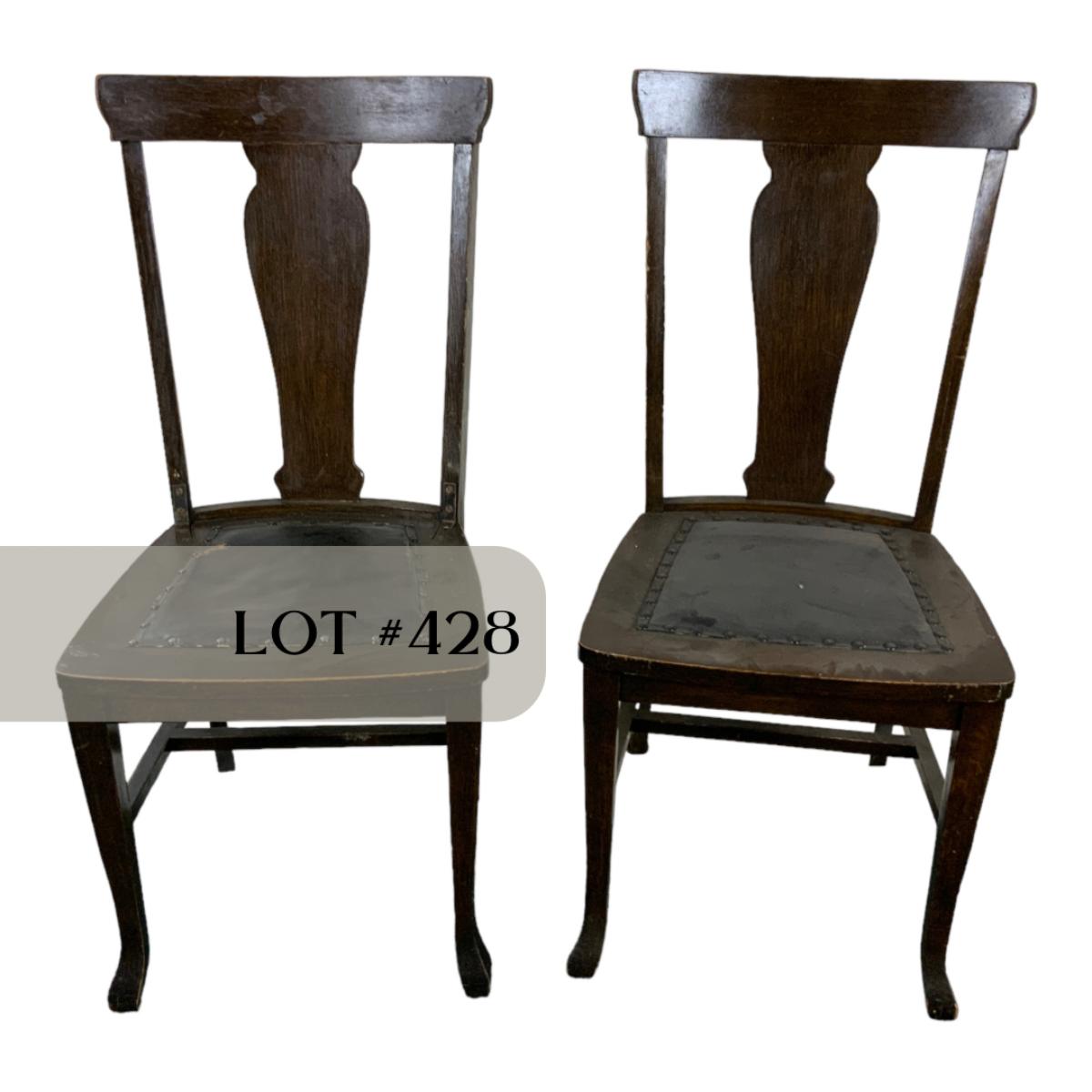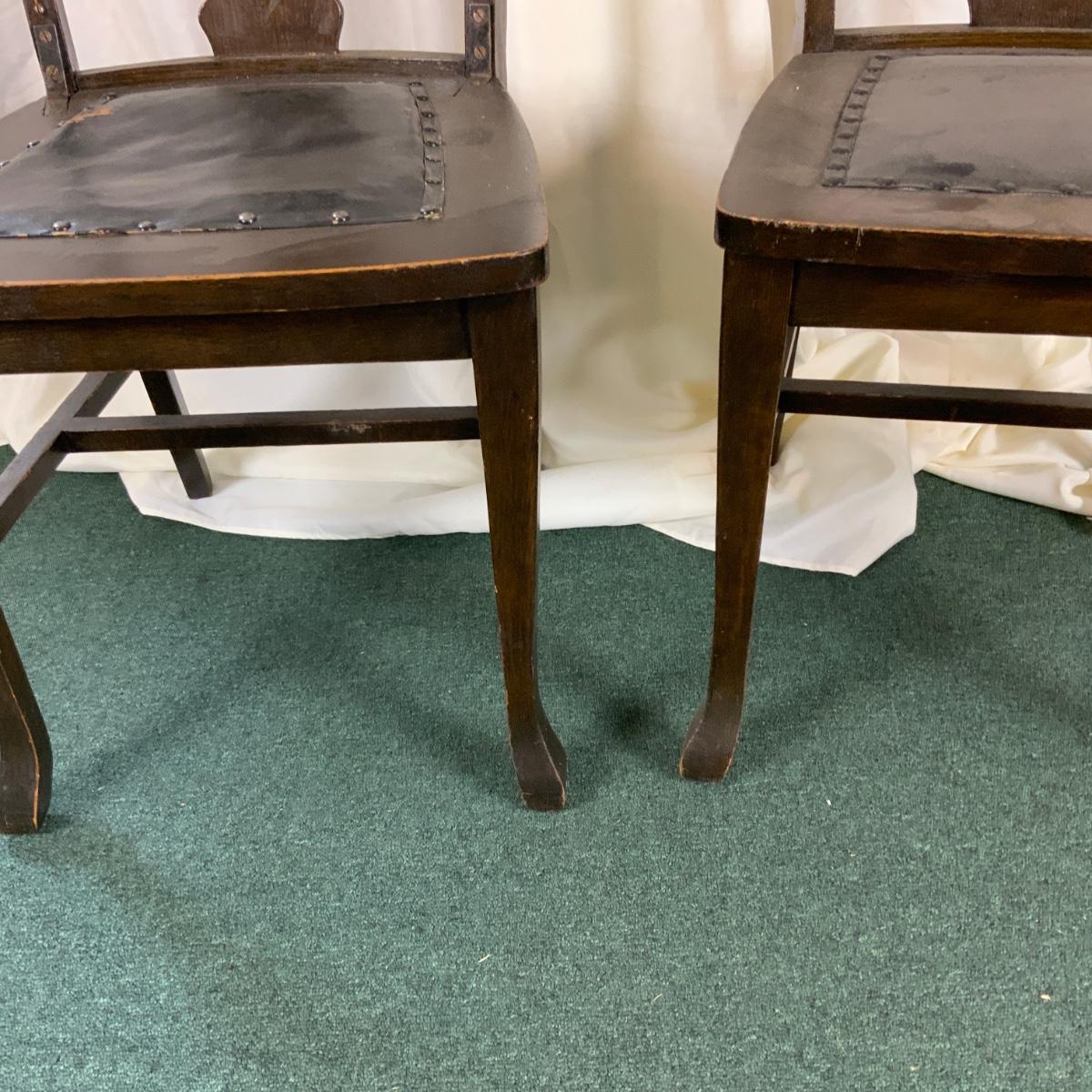 Two Dining Chairs. Nice matched set. //::\\ Please see photos for details and condition. No attempt has been made to hide any imperfections. All items listed in this auction are warehouse items, and need to be cleaned. A majority of the items need restoration as well. All items are sold AS IS and WITHOUT GUARANTEE. If you are uncertain about an item, DO NOT BID. Due to the nature of this online auction in-person inspection is HIGHLY recommended. All Sales are FINAL. Pick Up Times are FIRM. Please confirm with your own schedule that you can pick up in the scheduled times listed in the Terms and Conditions. Any questions please message the auctioneer. DO NOT Contact The Harp Gallery.