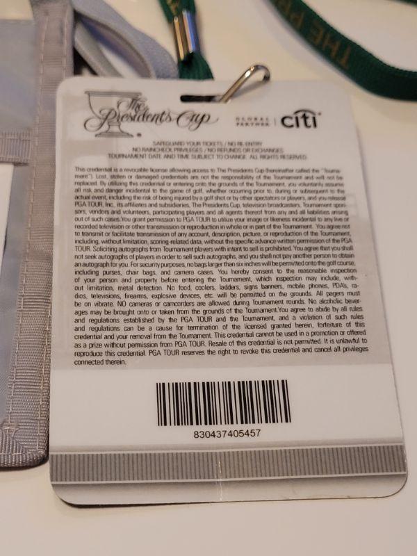 Lot #429: (2) PRESIDENT'S CUP Golf Tournament Tickets
