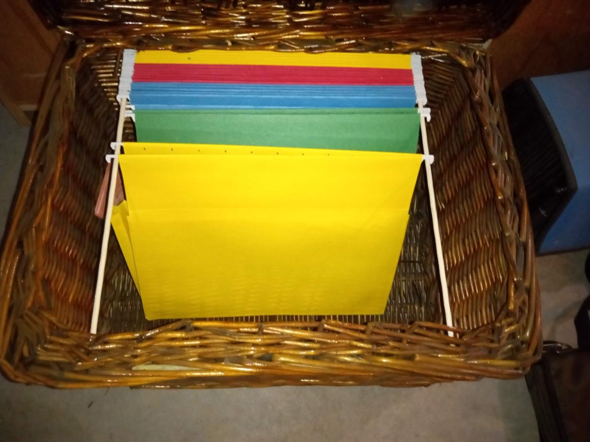 WICKER BASKET WITH LID USED FOR HANGING FILE FOLDERS, STUDENT SATCHEL, FILING BOX, NEW DIVIDERS WITH TABS
