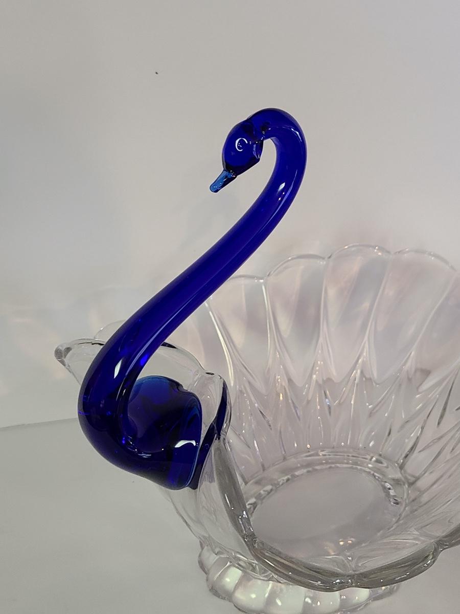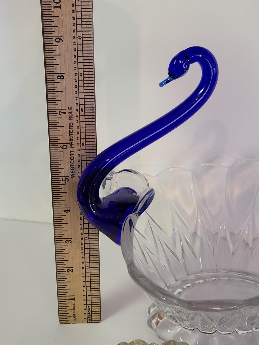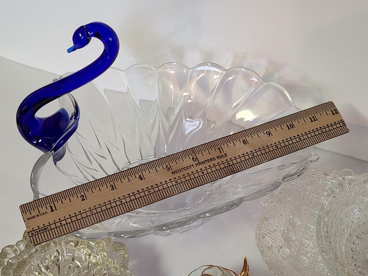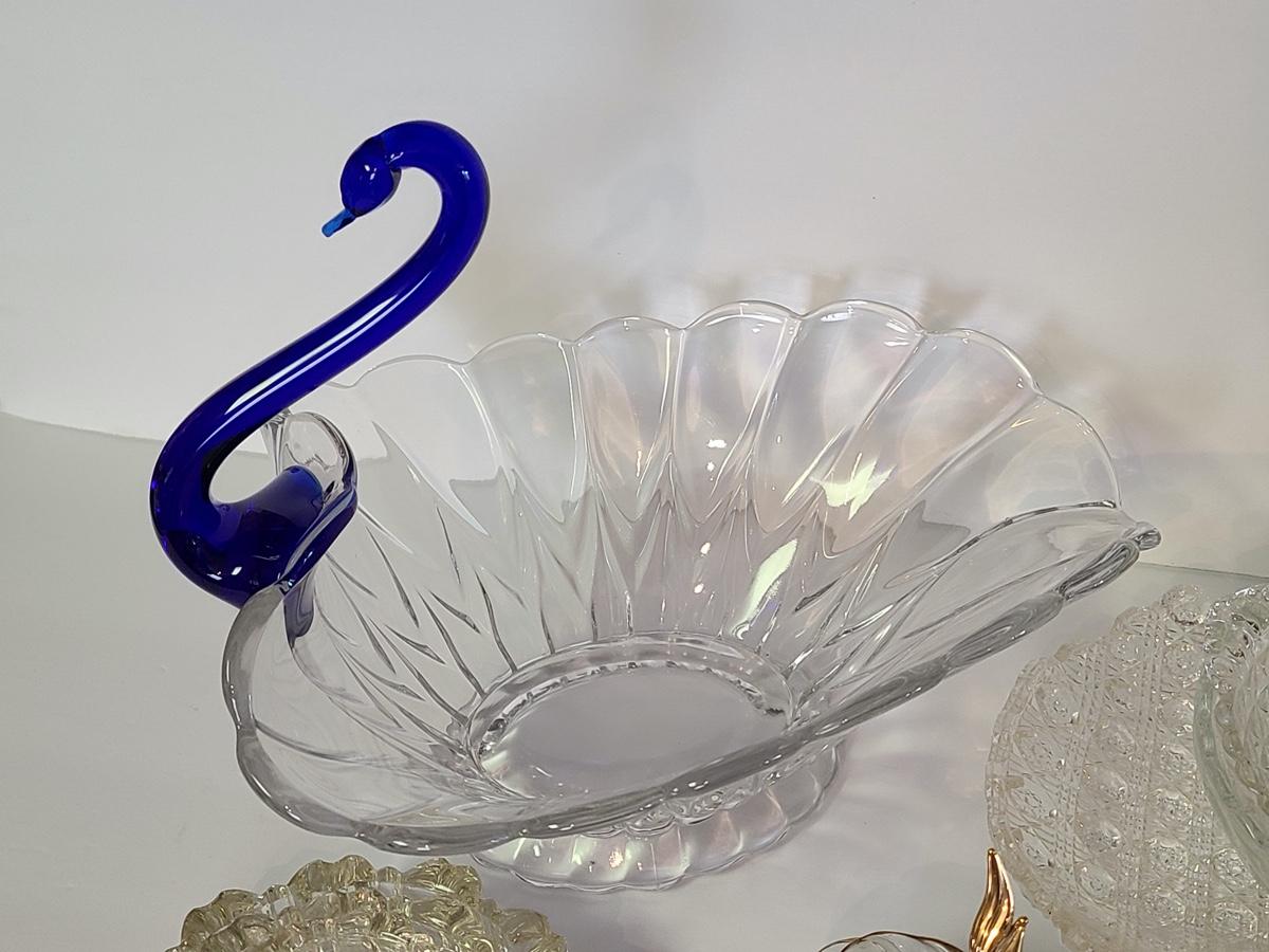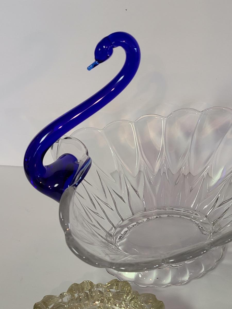 Lot 429: Blue Neck Swan Glass Server & Dainty Vintage Glass