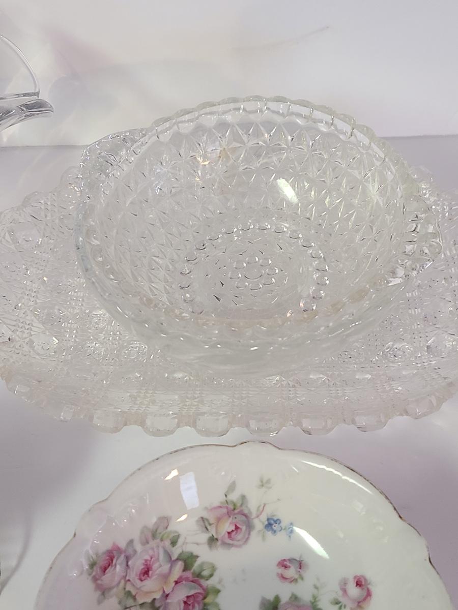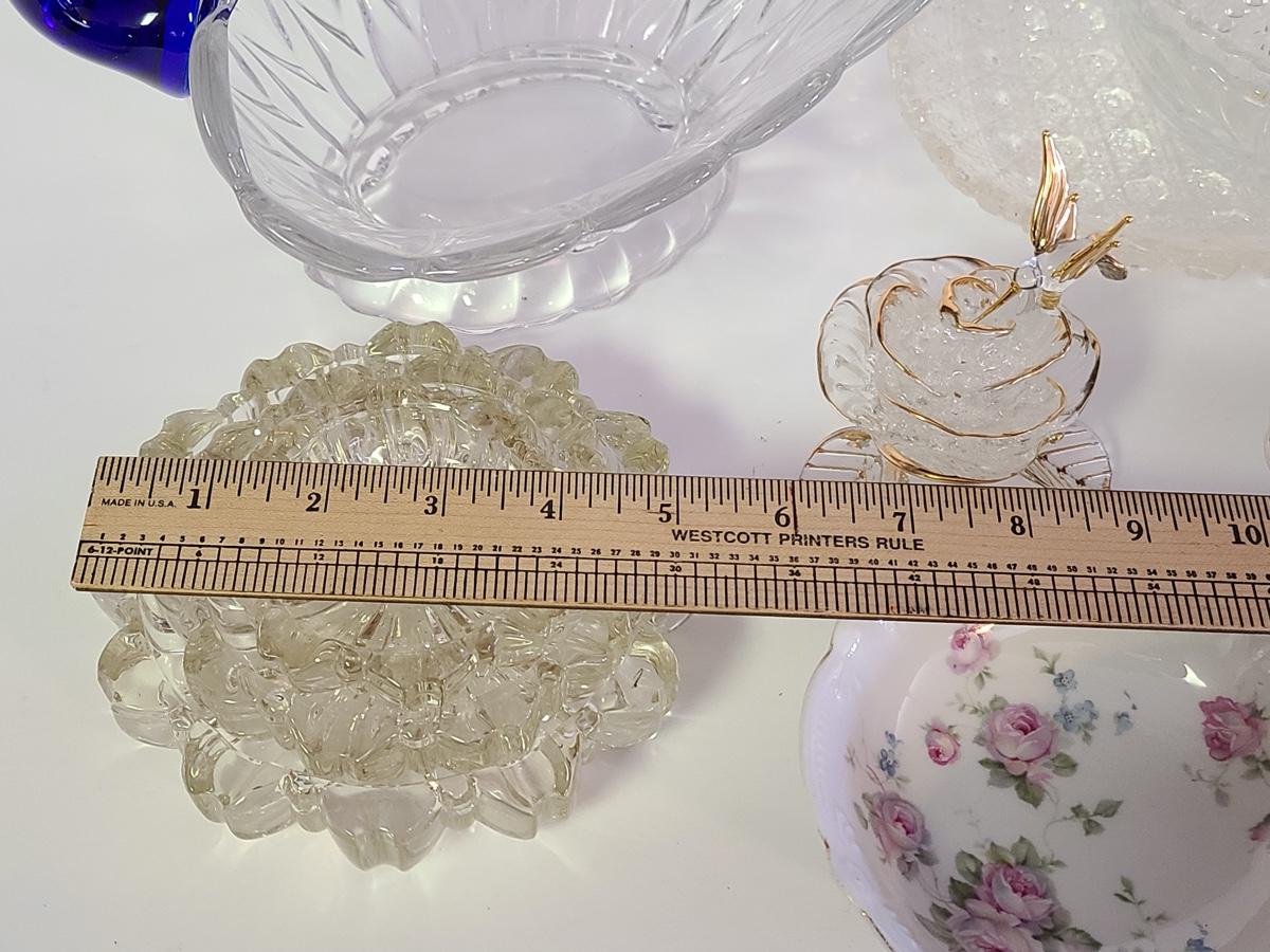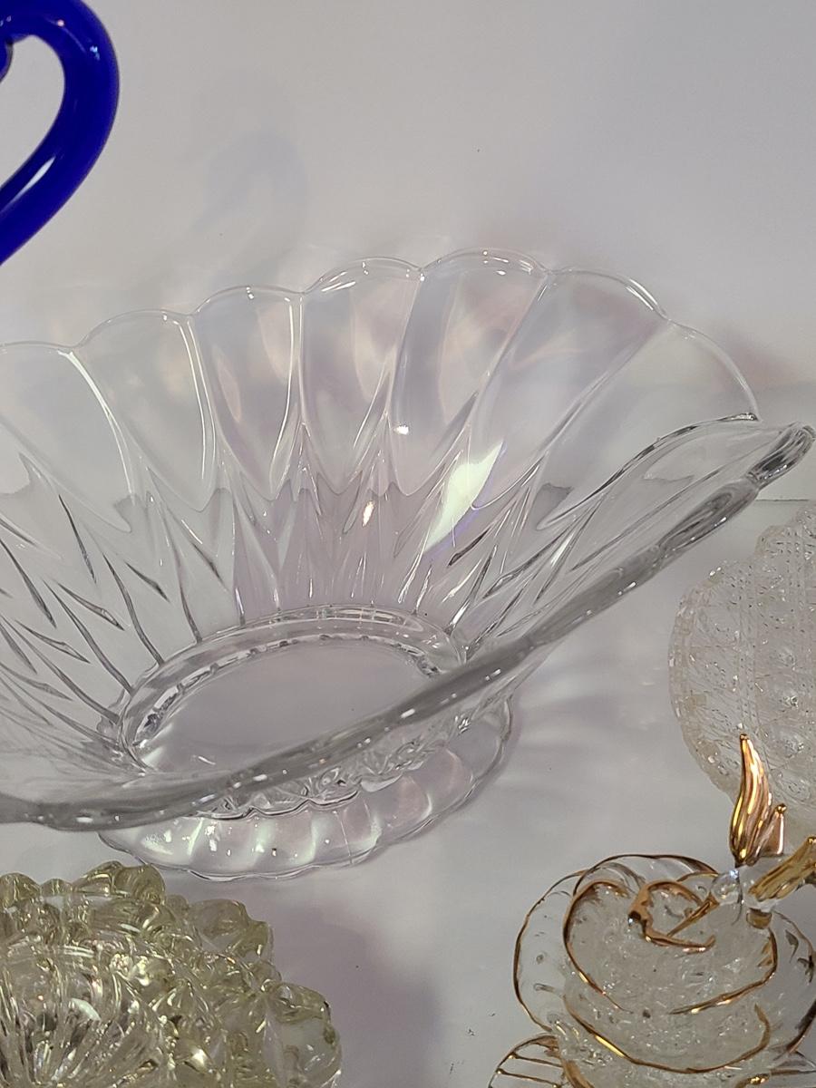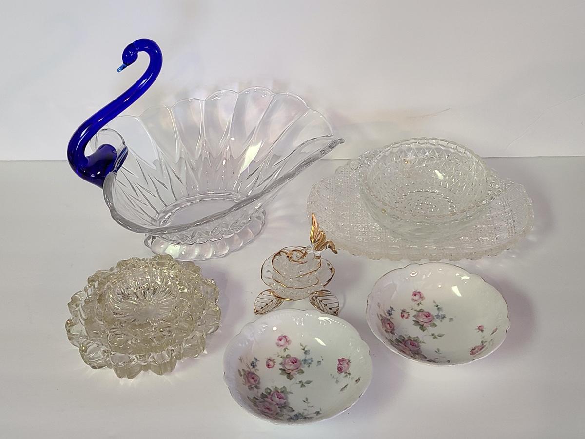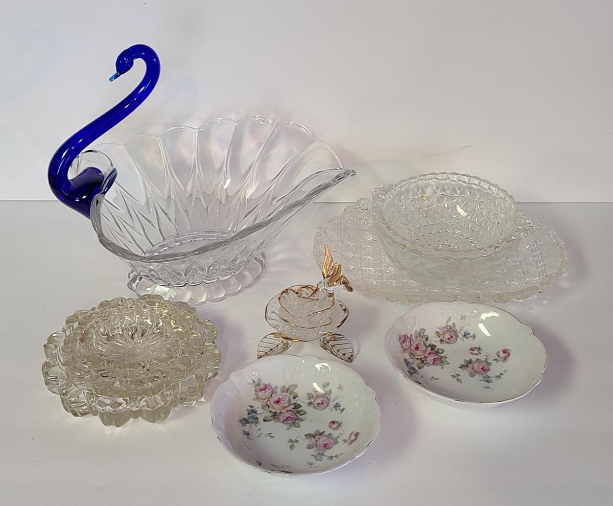 Lot 429: Blue Neck Swan Glass Server & Dainty Vintage Glass