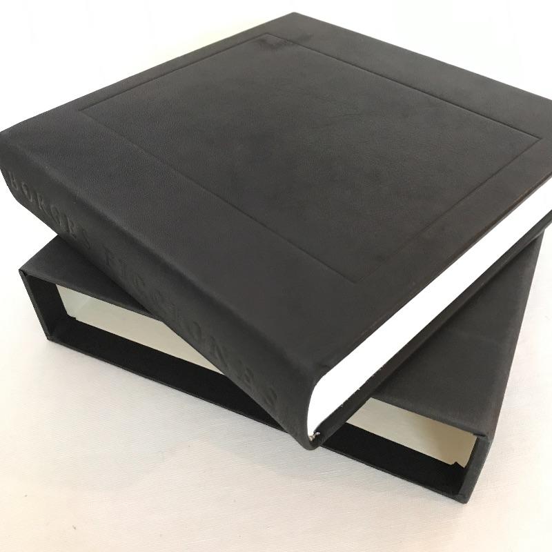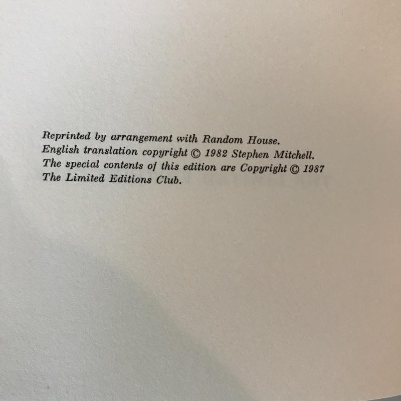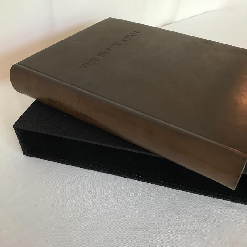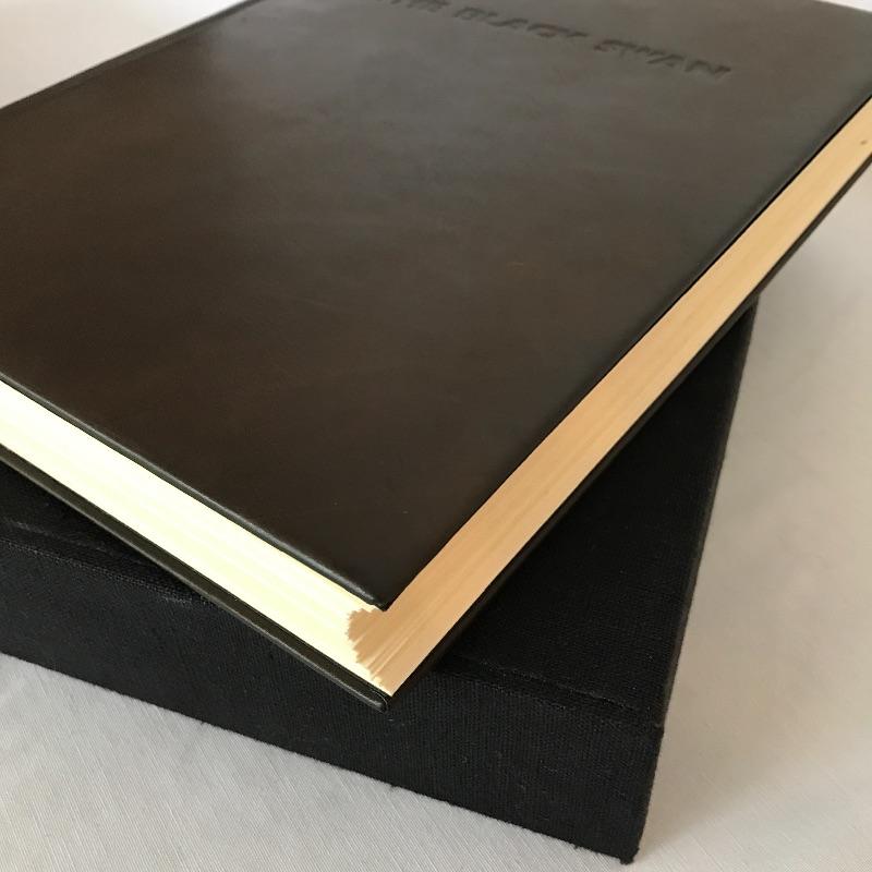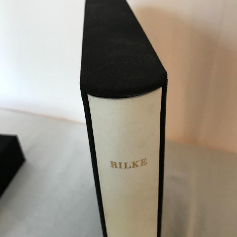 Three beautiful leather books published by the Limited Editions Club. First book is a black leather book called Ficciones by Jorge Luis Borges with silk screens by Sol Levitt. This black leather book is filled with illustrations in a nice square size 9” x 9”. Case is fabric covered with minimal wear. Book in excellent condition. The second book in this lot is The Notebooks of Malte Laurids Brigge by Rainer Maria Rilke. The white leather book could likely be cleaned up a little as it is more dirt than damage. The fabric cover is in good condition. Measures 10.5” x 8.5” Lastly, we’ve included The Black Swan by Thomas Mann in this collection. Gorgeous brown leather cover and black fabric case in excellent condition. Includes lithographs by John Hejduk. Measures 12.5” x 10”. Shipping available.