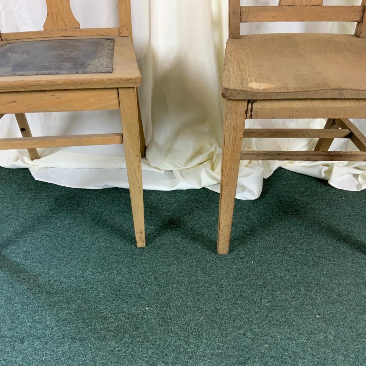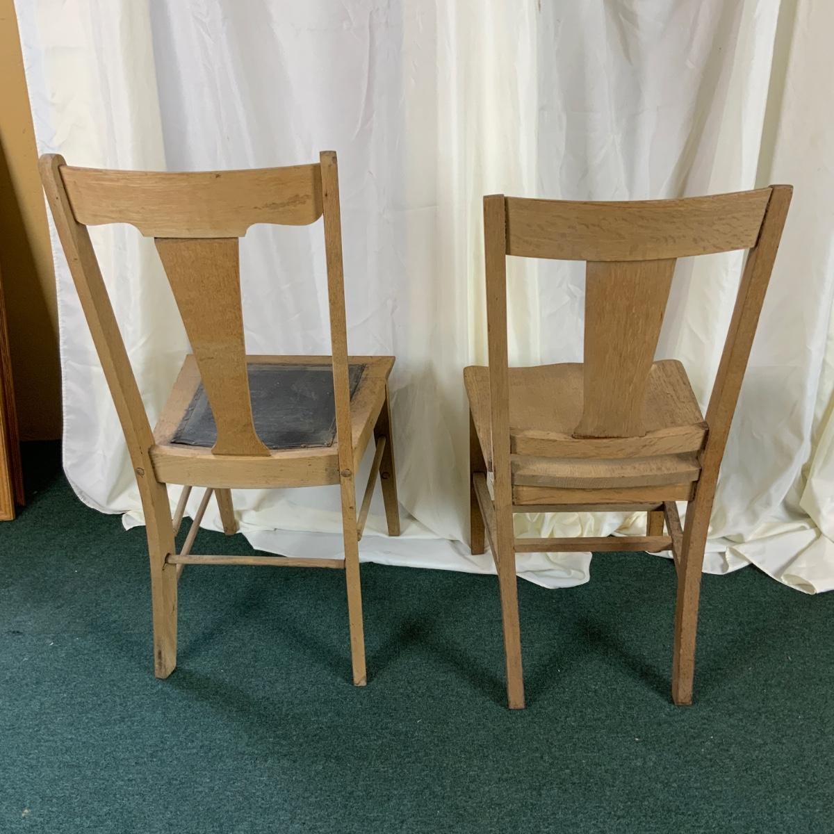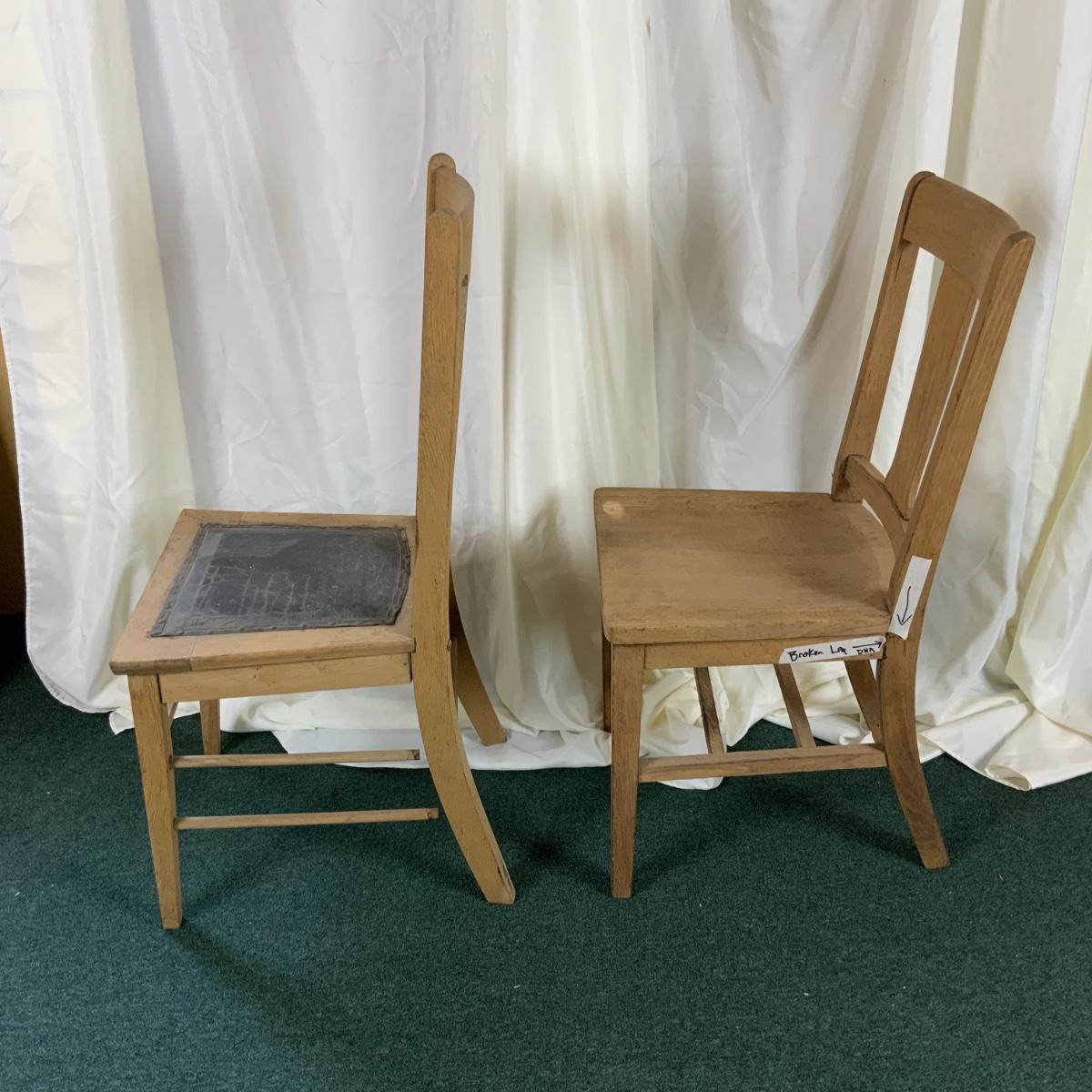 Two Mis-Matched Oak Chairs. Nice duo. Would be fun to match up with other similar pieces. //::\\ Please see photos for details and condition. No attempt has been made to hide any imperfections. All items listed in this auction are warehouse items, and need to be cleaned. A majority of the items need restoration as well. All items are sold AS IS and WITHOUT GUARANTEE. If you are uncertain about an item, DO NOT BID. Due to the nature of this online auction in-person inspection is HIGHLY recommended. All Sales are FINAL. Pick Up Times are FIRM. Please confirm with your own schedule that you can pick up in the scheduled times listed in the Terms and Conditions. Any questions please message the auctioneer. DO NOT Contact The Harp Gallery.