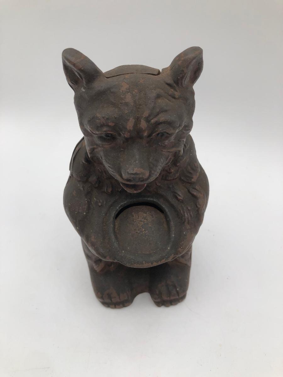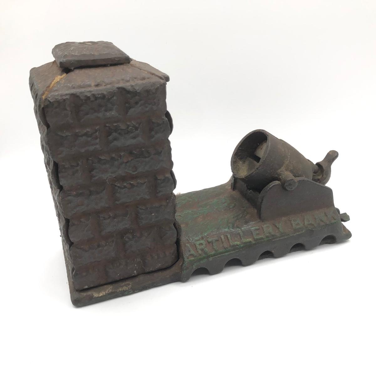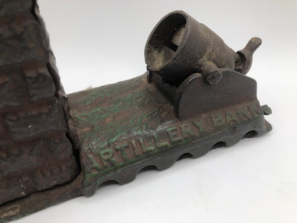 LOT 429K: Vintage Cast Iron Coin Banks - Hubley Bear / Dog & Artillery Bank