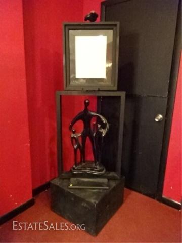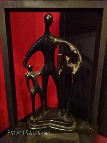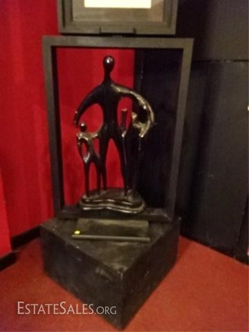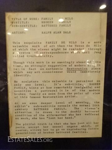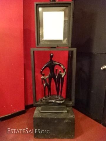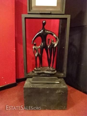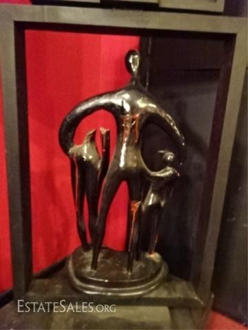 LOT 42B: RALPH ALAN DALE LARGE CERAMIC SCULPTURE ON REVOLVING WOOD BASE, TITLED "BROKEN FAMILY", APPROX 5.5'H, SKU390.12