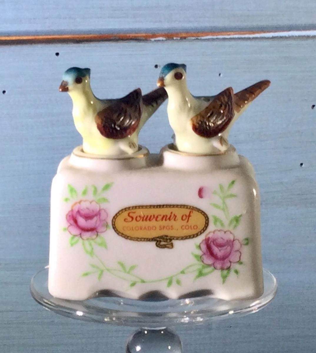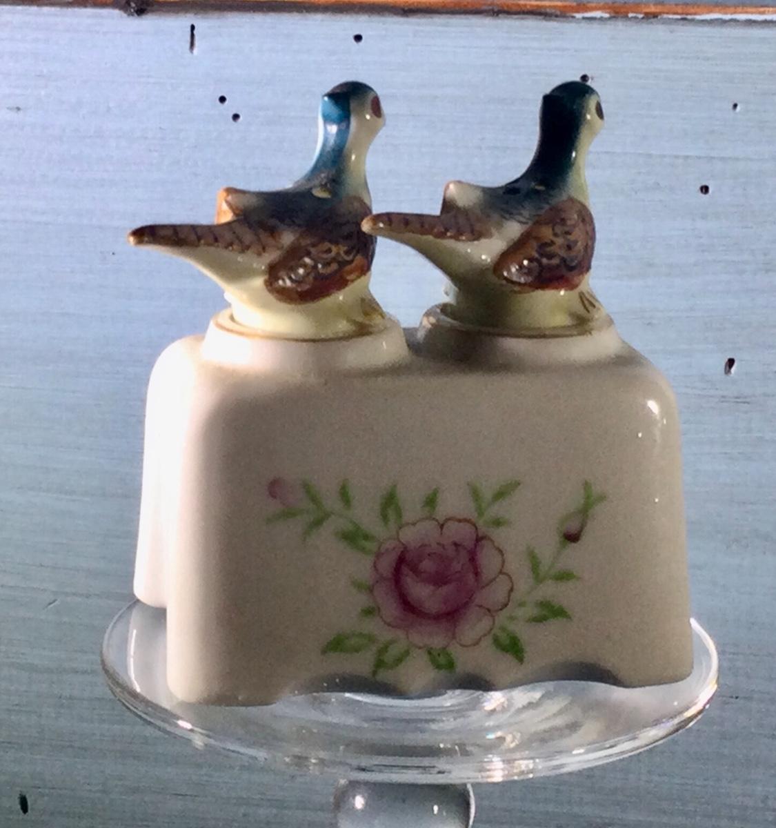 Lot 42JO - individual salt and pepper set, brown pheasants in holder