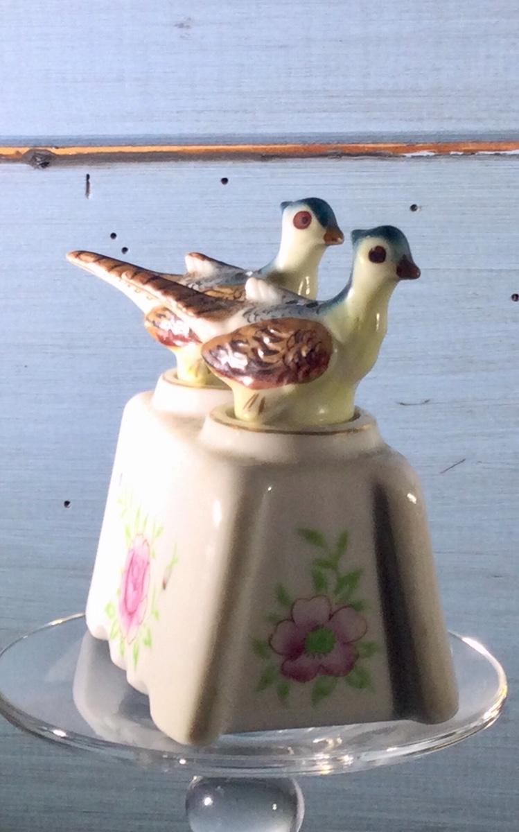 Lot 42JO - individual salt and pepper set, brown pheasants in holder