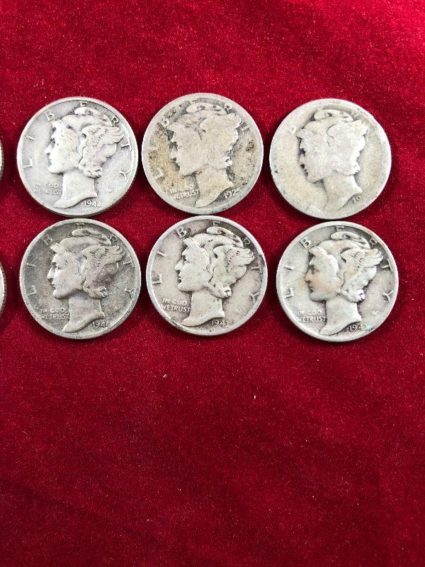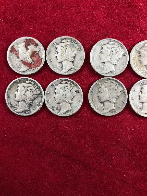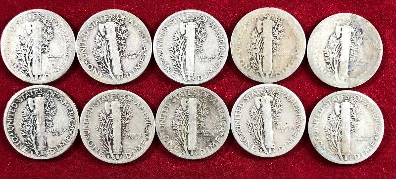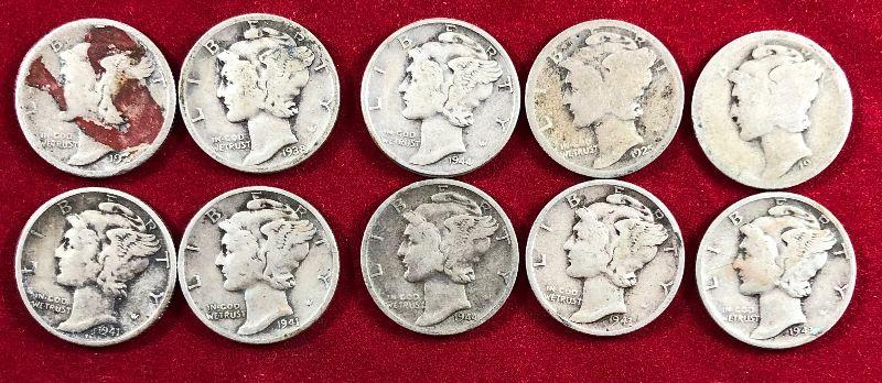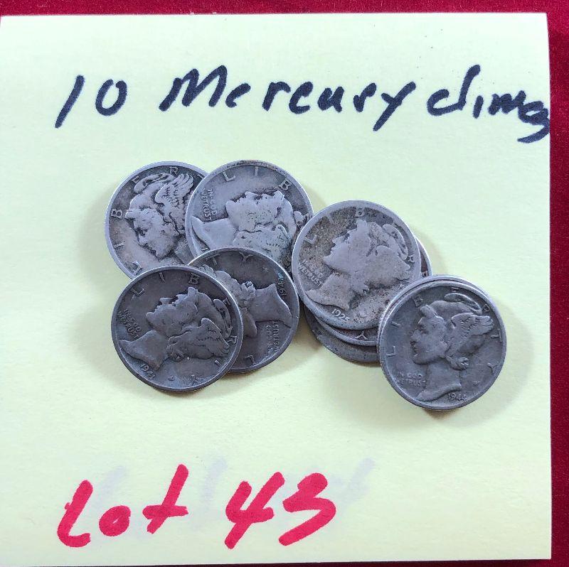 Lot #43- 10 Mercury Dimes Circulated 90% Silver
