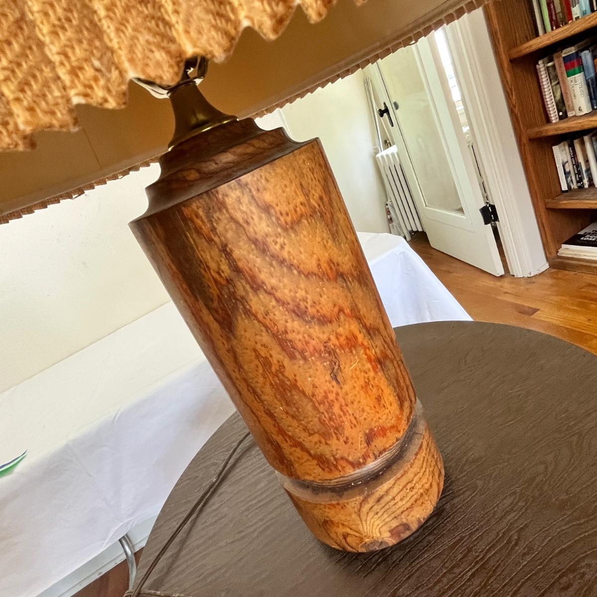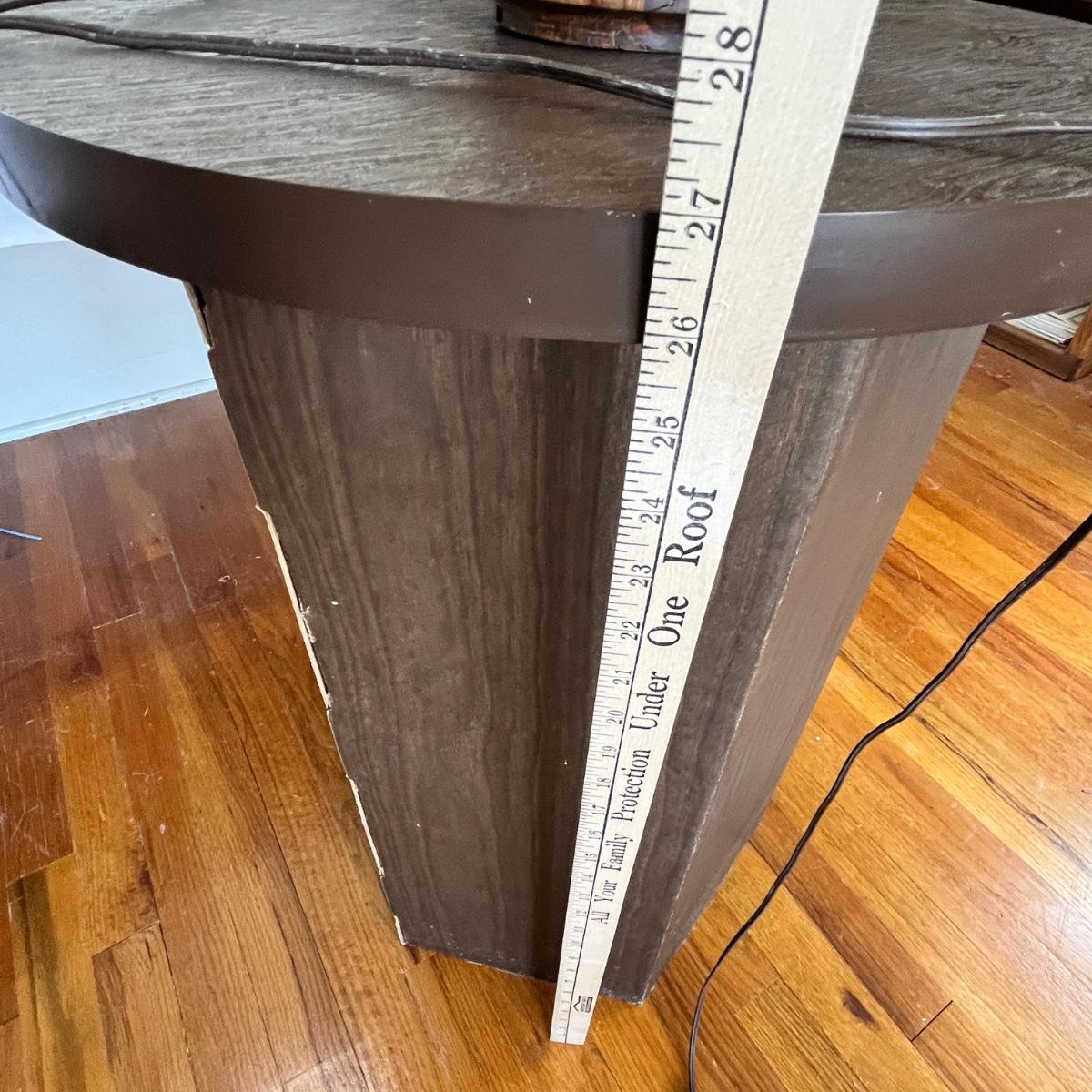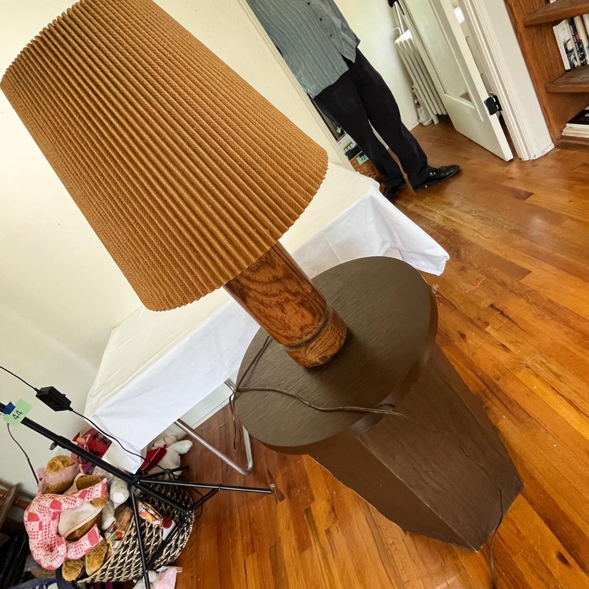 The lamp looks to have been made from an industrial item. Table is sturdy.
