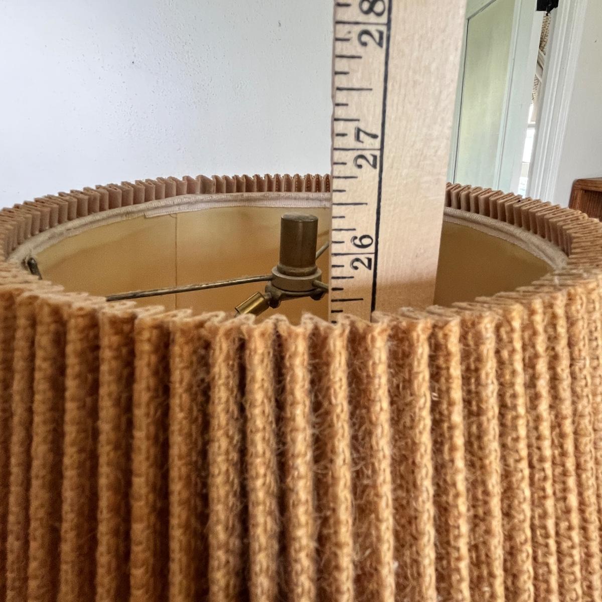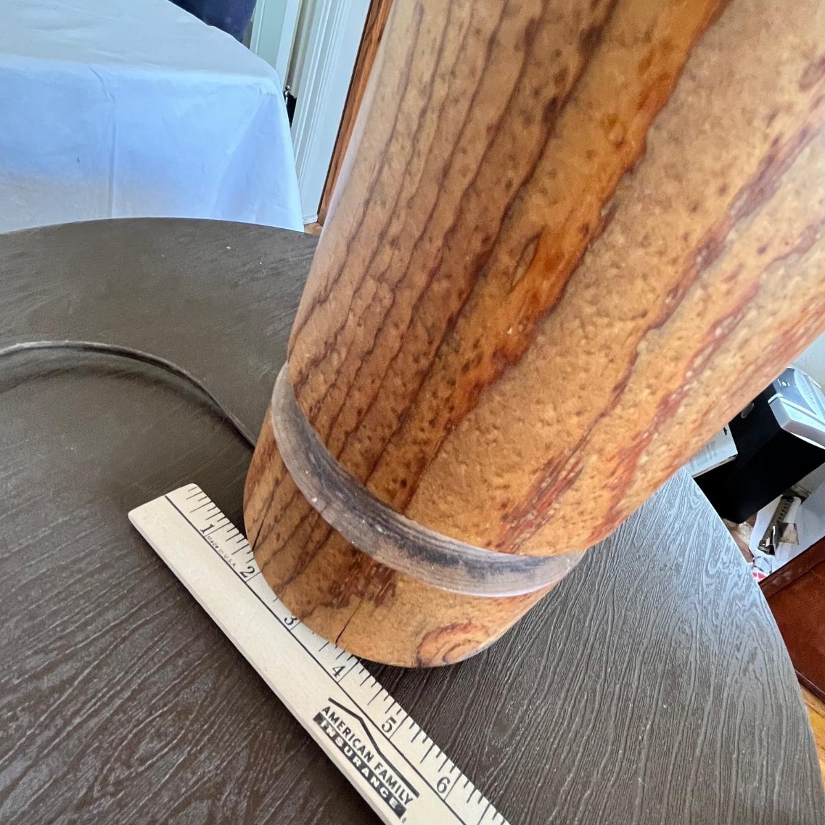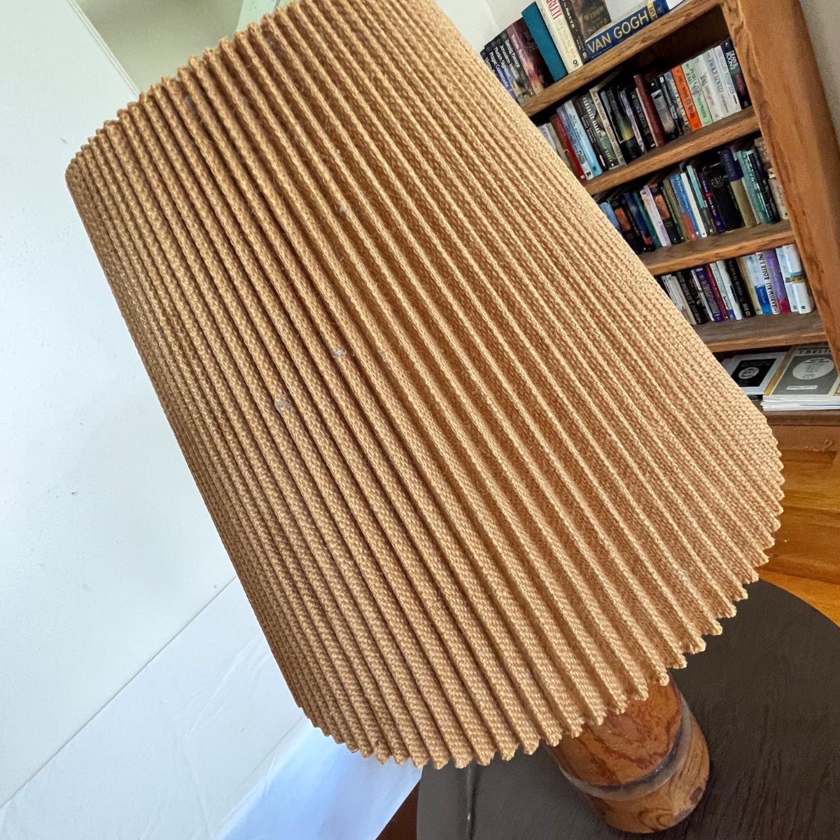 The lamp looks to have been made from an industrial item. Table is sturdy.