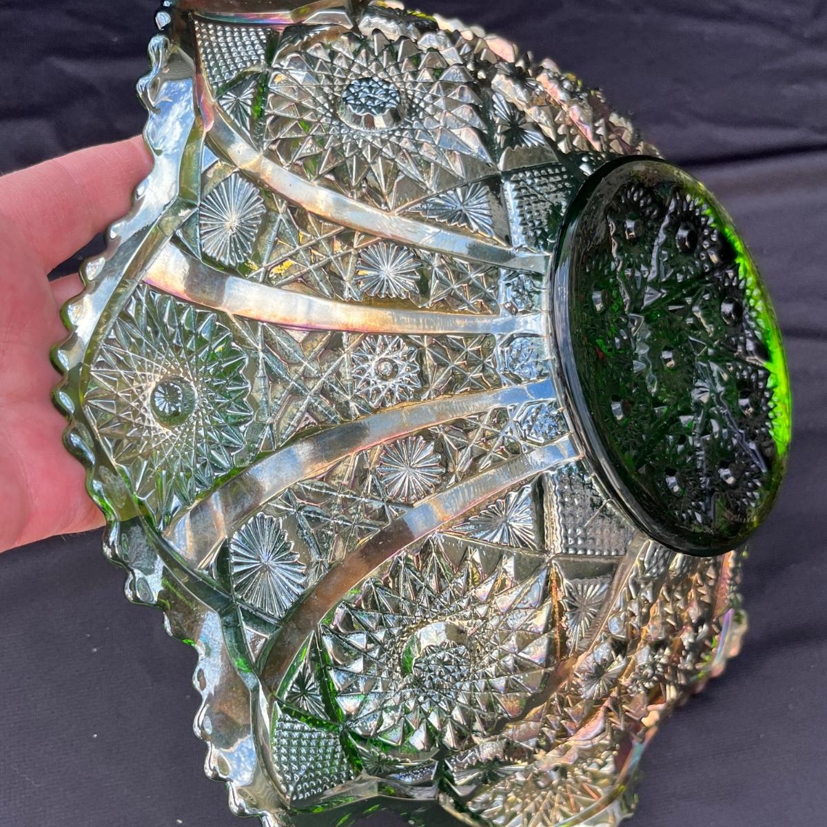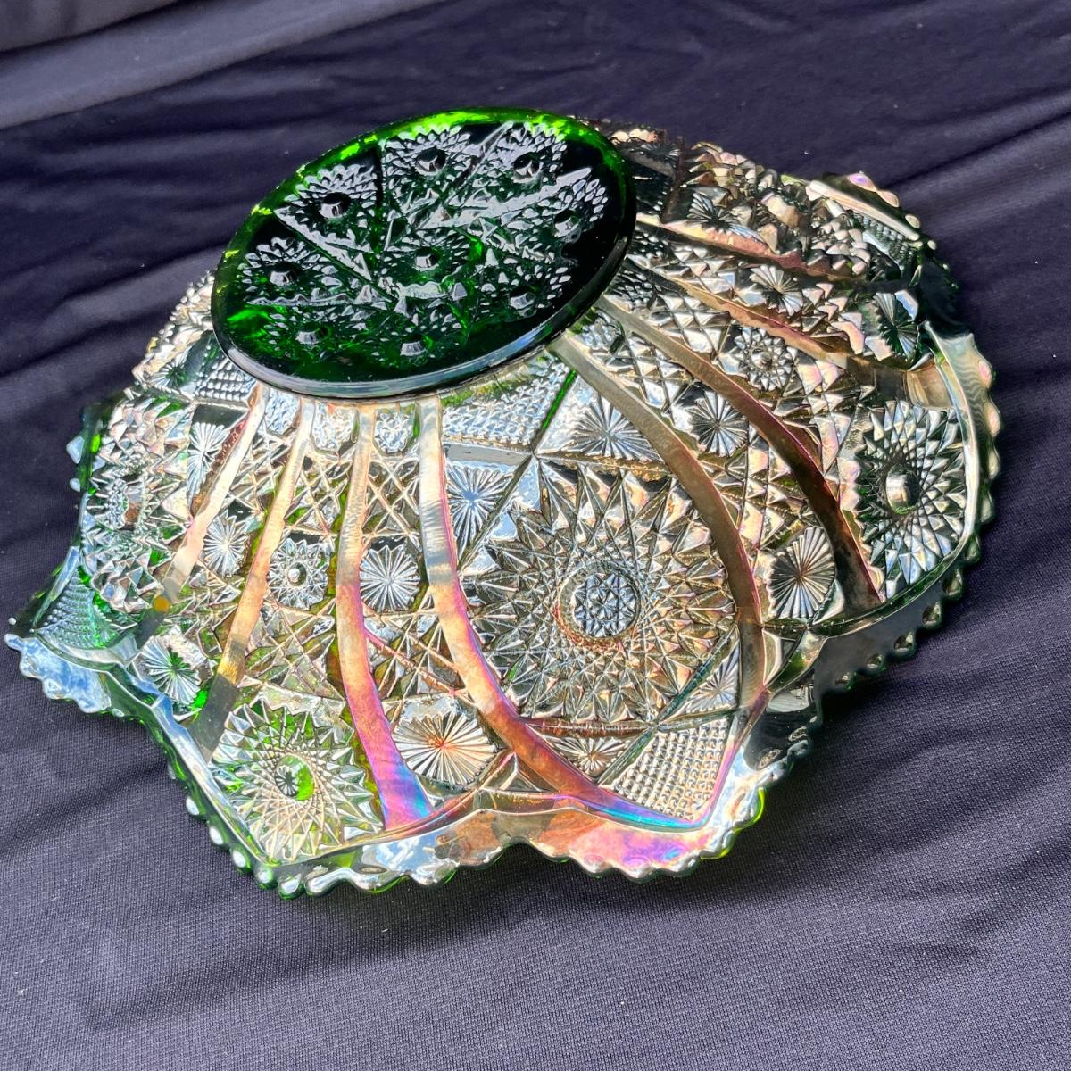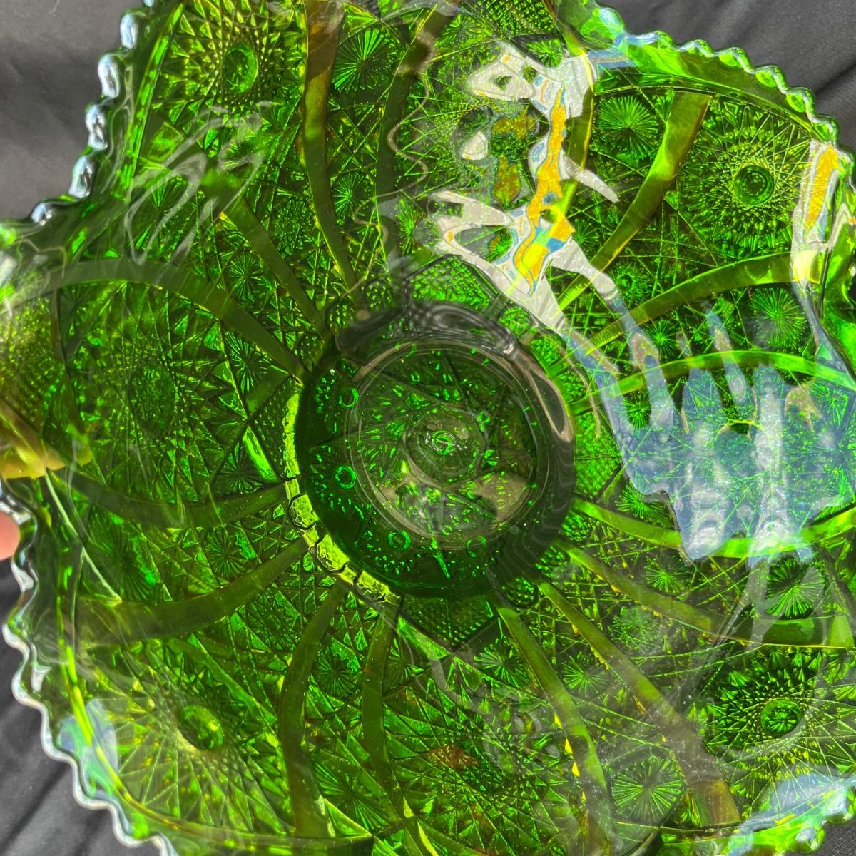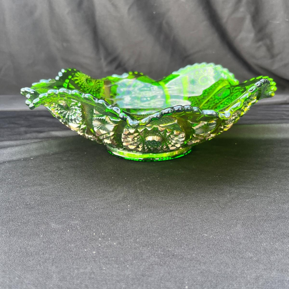 Lot 43 Gorgeous Imperial Green Carnival Glass bowl